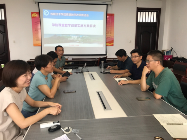 秦建波首先对学院课堂教学改革实施方案进行了解读,并介绍了兄弟学院“一专业一策”“一课一策”的好的经验和做法,要求各系主任、专业负责人负责结合专业人才培养目标,组织课程教学团队制定、论证教学改革方案,协助开展评价机制完善及教学行为监督;围绕课堂教学改革组织专任教师开展系列地教研活动研讨,组织研讨课和展示课的备课、听课、评议等活动。各试点课程负责人及骨干教师负责结合课程体系对毕业要求的支撑关系,认真制定并严格落实课堂教学改革的举措,及时总结教学改革的经验并持续改进;根据课程特点,统筹课程改革内容,制定课程的“全过程学业评价”新教学大纲,明确课程考核方式、考核内容、考核规程等。秦建波强调学院具有良好的课堂教学改革基础,各位老师要将教学中已在实施的翻转课堂、项目式教学等教学方法以及作业作品考核等过程性评价方式进行经验总结,试点课程间相互沟通和交流,充分发挥我院教育技术学专业优势,领会本次课堂教学改革的通知精神,做好课程的改革试点工作,努力将试点课程发展为示范课程。
