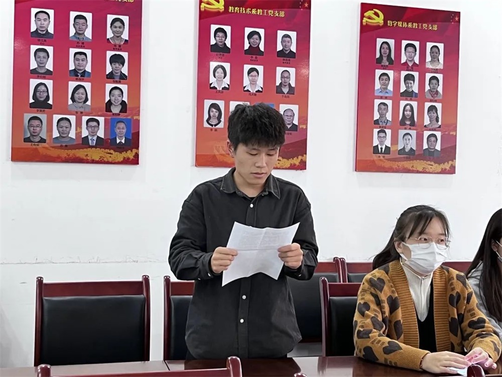刘妙祎作为各位预备党员的培养介绍人,介绍了预备党员在预备期间的培养考察情况,肯定了三位同学在预备期间的思想情况,工作状态、生活作风。经过大会充分讨论及举手表决,支部大会同意了三位同志的转正申请。
