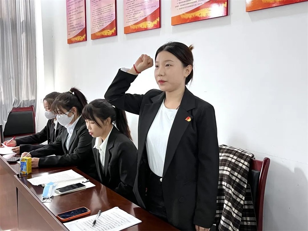 随后,各位转正党员进行宣誓,党支部书记刘妙祎就大会情况作了简要总结。党支部预备党员转正大会已进行完毕。
