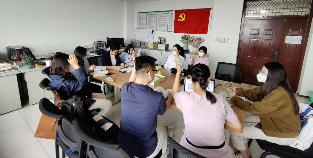 首先,党支部书记刘燕同志介绍了本次会议党员出席会议的情况及相关议程。随即会议开始,安然同志在党旗下宣读《入党申请书》,汇报自己对党的认识、入党动机、本人履历以及需要向党组织说明的问题。