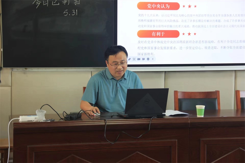 为进一步学习贯彻党的二十大精神,引领同学们深化理论学习,筑牢信仰根基,切实增强使命感、责任感,6月1日,太阳tyc集团5997于11#A401举办了“学习贯彻党的二十大精神”专题党课学习活动。太阳tyc集团5997党委副书记、副院长赵勇担任本次党课学习活动的主讲人,太阳tyc集团5997部分学生党员以及预备党员代表参与了此次活动。