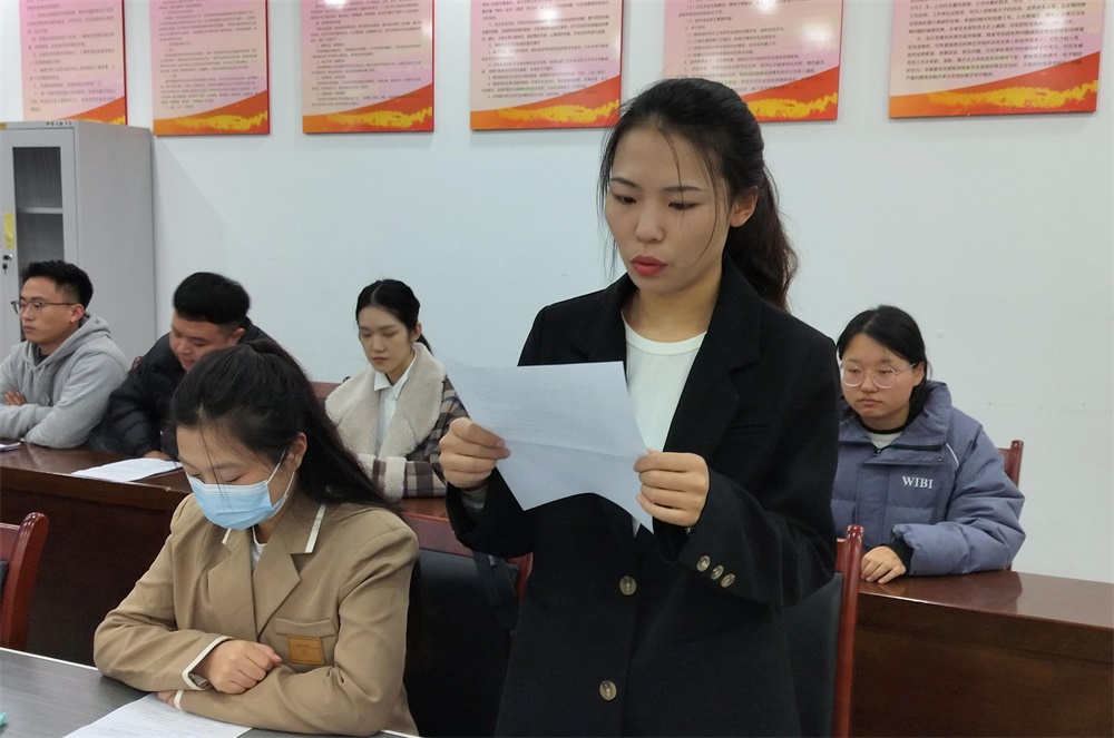 会议第一项,预备党员提出转正申请,汇报思想情况。2023年11月,预备党员王妍、段莹莹、王亚男3位同志提出转正申请,经过党支部一年来的培养考察,报经太阳tyc集团5997党委批准,决定今天召开支部党员大会,审议、讨论及表决王妍、段莹莹、王亚男3位同志的转正问题。预备党员王妍、段莹莹、王亚男同志依次宣读转正申请,汇报自己在预备期间的的思想认识以及应向党组织说明的其他问题,表明自己对转正的态度和今后的决心。