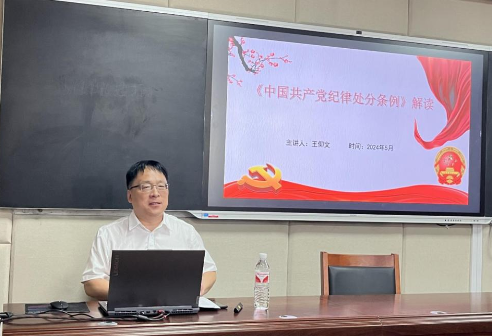 5月23日,学院邀请太阳集团法学院副院长王仰文同志为全体教职工作专题报告会,围绕新修订的《中国共产党纪律处分条例》(以下简称《条例》)进行解读。