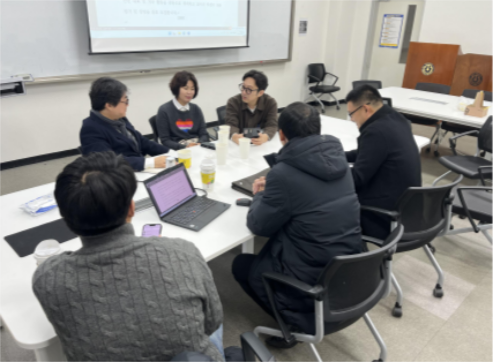 深研学术同逐梦,广聚高贤共探真。抵达清州大学后,学院代表团首先与国际合作交流处处长权赫宰、项目组长林钟润及两校合作项目负责人金荣河老师围绕提升项目教育教学质量开展研讨会。会议期间,双方积极分享教学经验,诚挚交流观点,并针对当前面临的挑战与潜在机遇进行了全面剖析。此外,教师们还与张一夫、展浩、李从睿、肖媛媛、李志豪、王宁等学生围绕硕博士论文写作及电影艺术创作等主题展开了热烈讨论,现场气氛热烈,思维碰撞,灵感闪现。