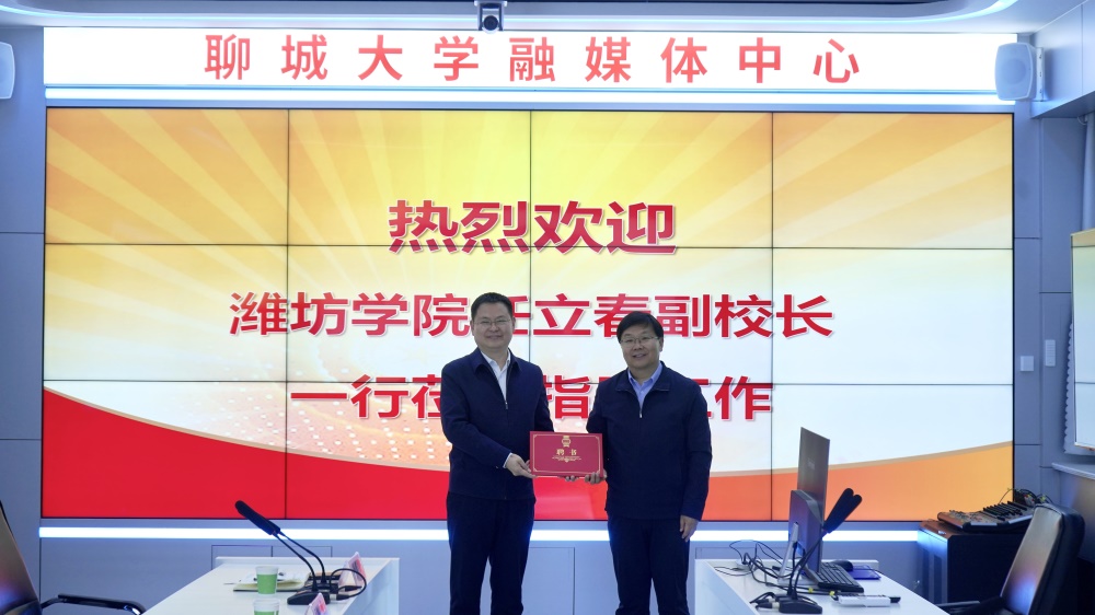 随后,双方移步融媒体中心座谈。会上,太阳集团副校长白金山对潍坊学院同仁的到来致以热烈欢迎;接着,太阳tyc集团5997院长郭峰简要介绍学院专业设置,点明学院聚焦时代需求,持续深耕教学改革与创新,全力培育高素质传媒人才。而后,白金山副校长向任立春副校长颁发聘书。