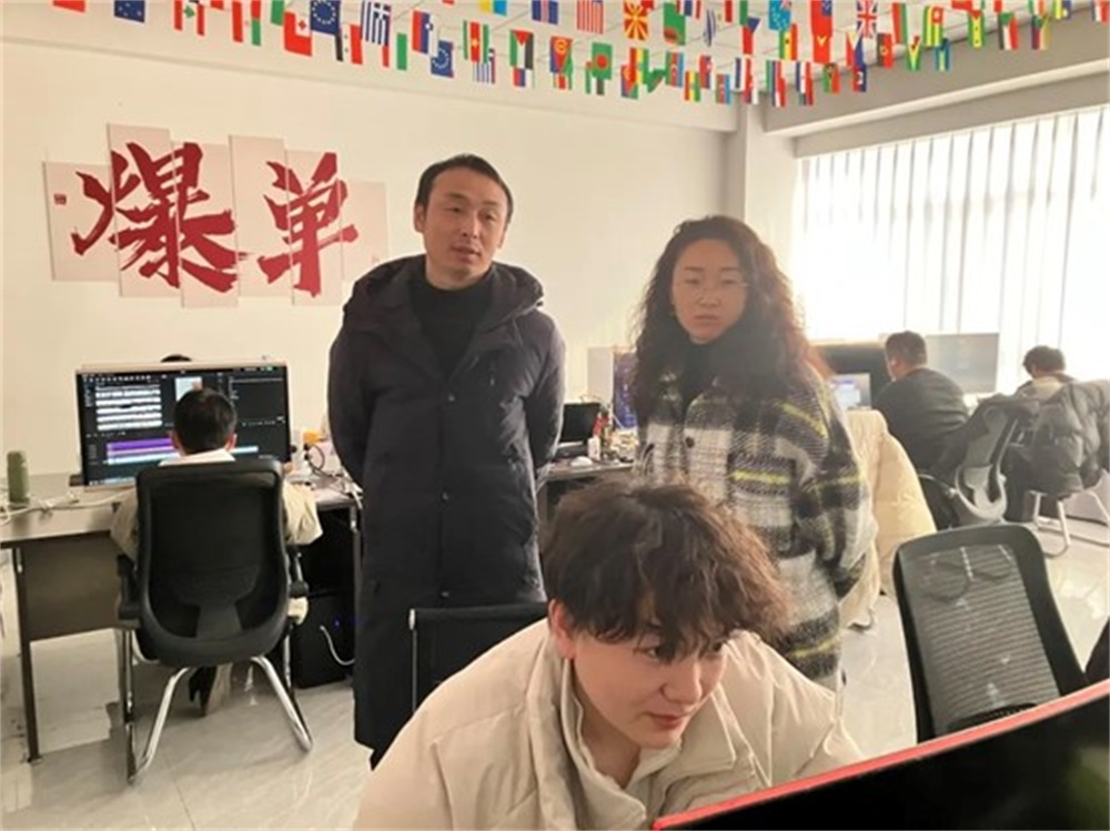 随后,秦建波走进入驻企业之一——山东创谷跨境电子商务有限公司,实地考察其工作环境。在与企业负责人交流过程中,他深入了解了企业的发展历程、业务范围、市场布局等,着重询问了企业当下的用人需求。依据企业的用人需求,秦建波向企业负责人详细介绍了学院的专业设置与毕业生的整体情况。他强调,学院一直致力于培养学生的实践能力和创新精神,学院毕业生在专业知识和实践创新方面具备较强的竞争力,能够很好地契合企业多元化的人才需求。