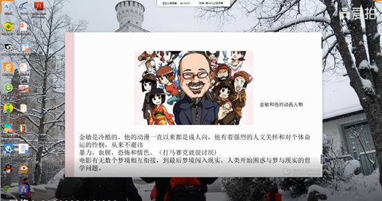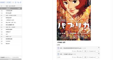 教师讲授环节需要配合超星学习通平台的推送内容、课程PPT以及相应网络资源协同进行。在推送内容中包括基本的文本、图片、视频等内容,还包括扩展的论文、影评、影片制作资源(分镜稿、设定集、画集、剧本、原画稿等)等内容。上述内容是通过链接的方式进行推送的,使用了Bilibili弹幕网、时光网、知网、百度学术、豆丁网等多个平台的资源,我本人收集的资料则通过提供个人百度云盘链接的方式分享给学生。后期学生们发现的优秀资源也会以相应的形式在QQ群里进行推送、分享(需经过教师的审核)。