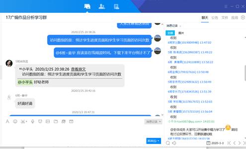 从前三周的线上教学实践来看,同学们其实都是爱学习的。从QQ群到平台群聊再到数据统计可以看出,同学们都是非常积极去学习,没有丝毫懈怠,这其实是大大出乎我的意料之外的。