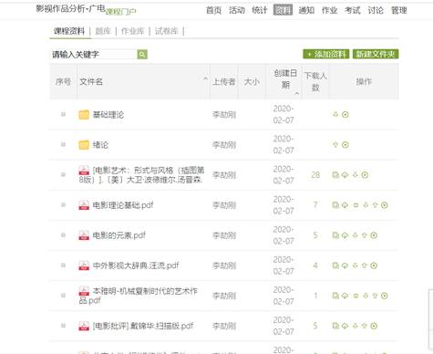 由于疫情严重,同学们都得居家,不得外出,学生们的上网条件情况不一。我通过QQ等联系方式,大致了解了部分同学还是存在硬件设备落后、网络不佳、流量上网等情况;另一方面,我也尝试了雨课堂、课堂派的直播方式,存在着延迟严重、有回音等问题。鉴于此,为了更好地达到教学目的和教学效果,我采用了超星泛雅(学习通)平台进行线上教学。学校教务部门建立超星平台学习QQ群,我积极进行了相关学习,开学一周之前就将课程相关学习资源(PPT、PDF、视频、电子图书等)(图1、图2)上传到超星学习平台,为正式开始课程的学习打下了坚实的基础。