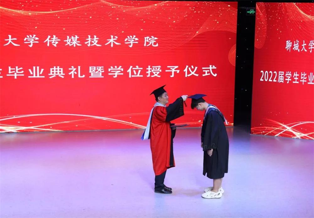 郭峰代表学院向全体毕业生提出三点希冀与嘱托。一是要心存高远,意守平常,终立报国之志。始终将个人发展融入国家发展的大格局中,将高远志向和扎实技能投入到建设祖国的伟大事业中,实现自身的目标与价值。二要不畏苦难,接纳自己,终会向阳而生。与自我和解,与世界和谐共生,以初心和善良继续迎难而上。三要勤学好问,善思笃行,终成学无止境。同学们要不间断、踏实地学习新的知识,充实自我。郭峰祝愿全体毕业生不忘过去、不畏将来,带着作为一个聊大人、一个聊大传媒人所应有的风骨继续前行。