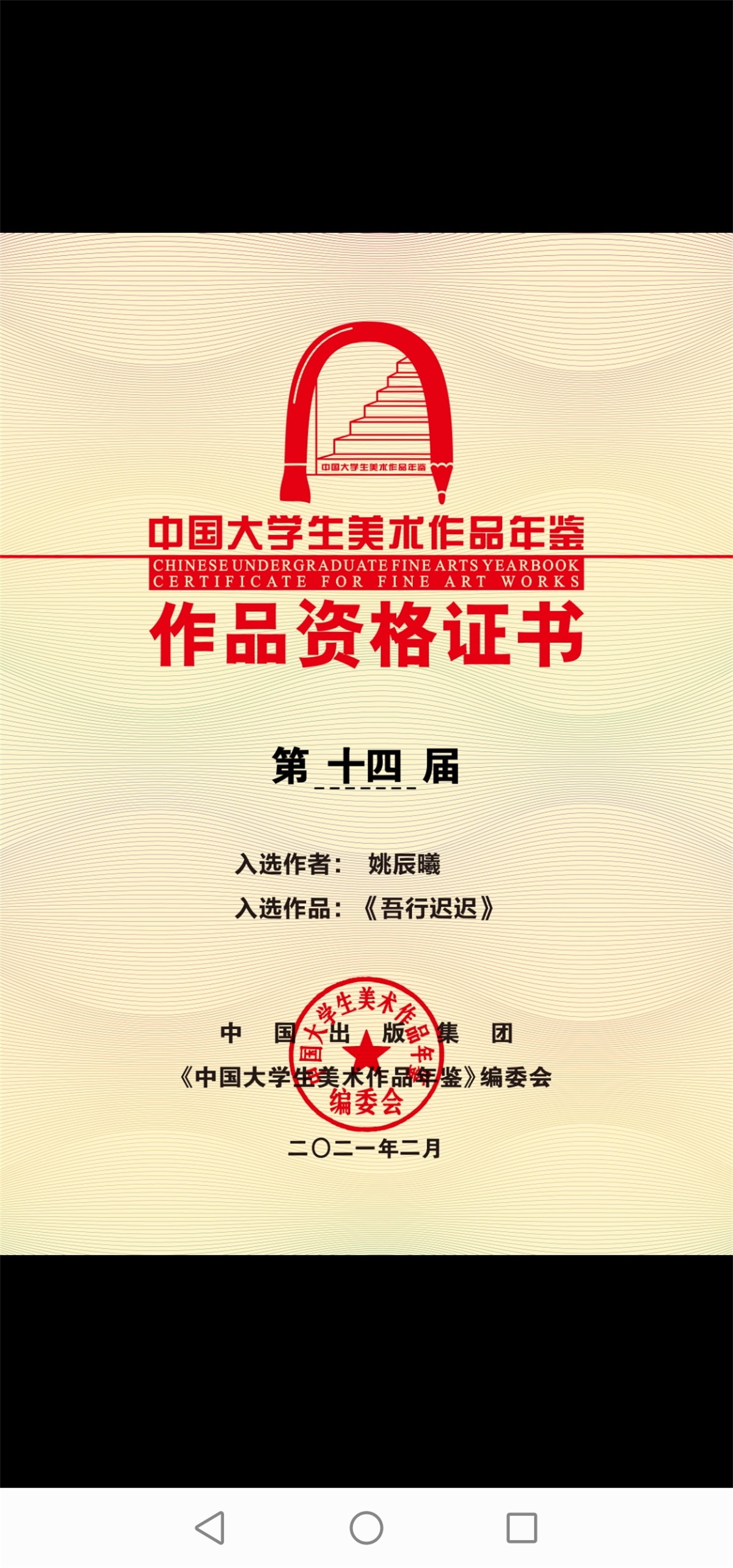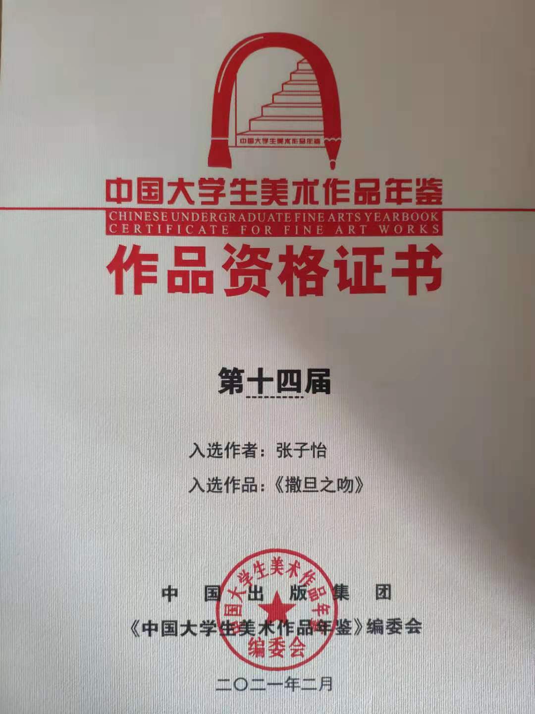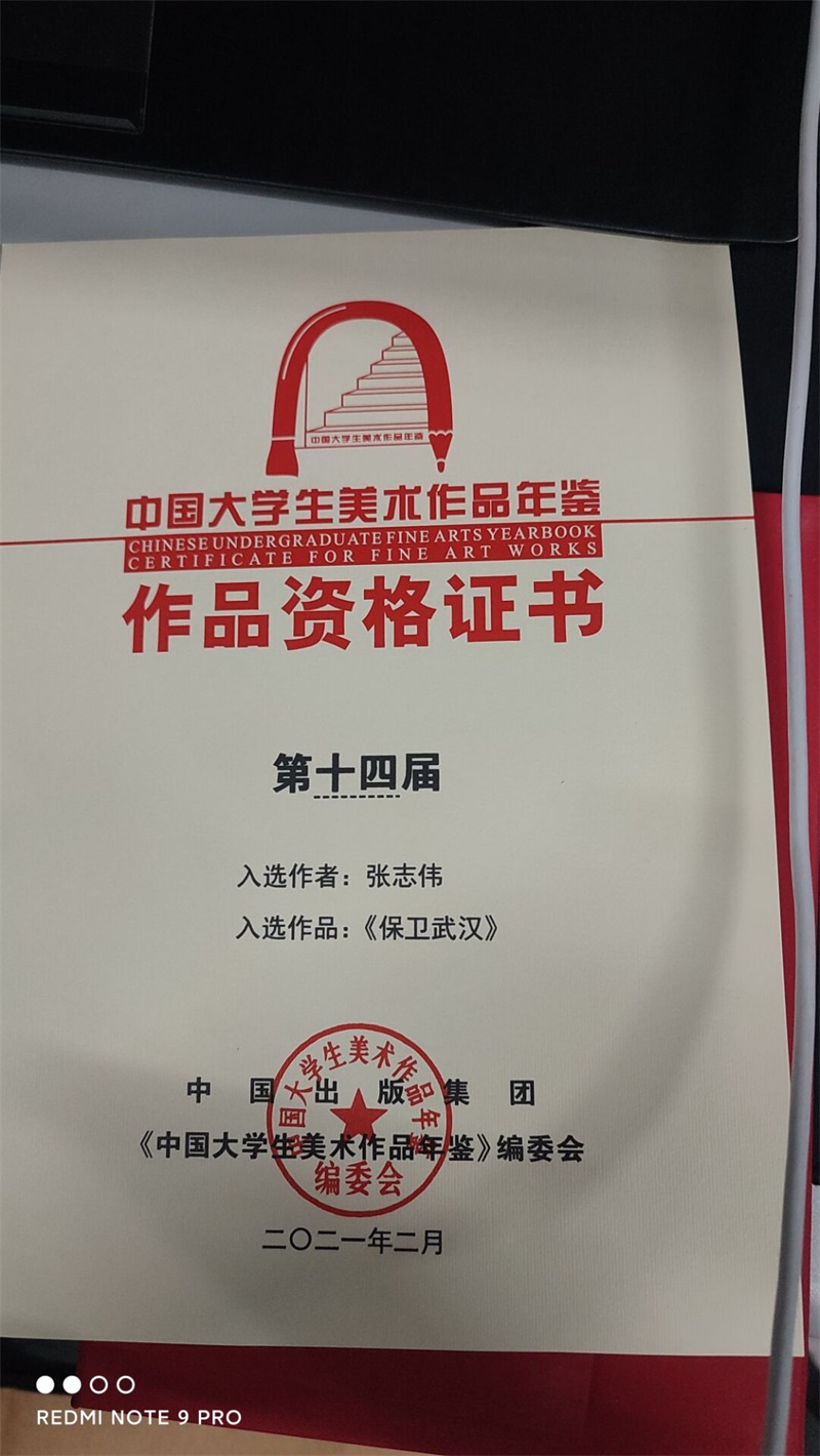 张志伟的《保卫武汉》获得中国大学生美术作品年鉴作品资格证书