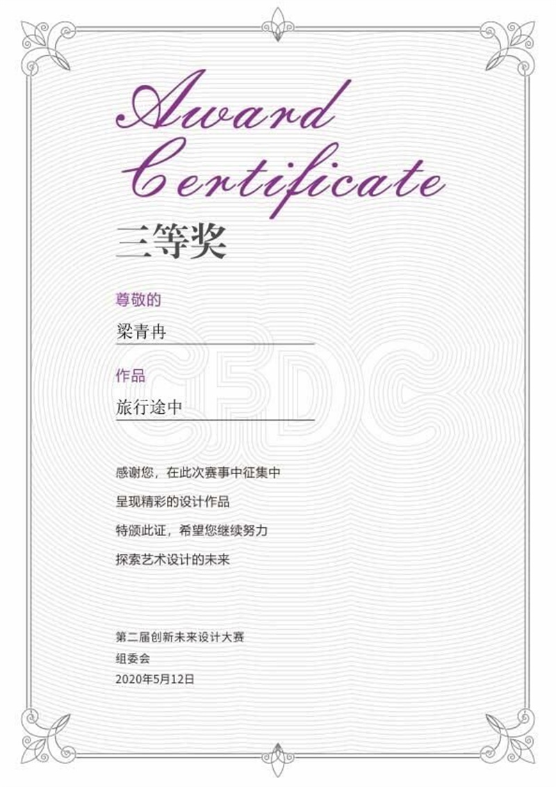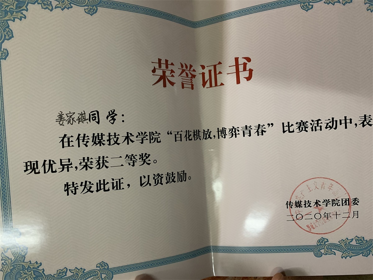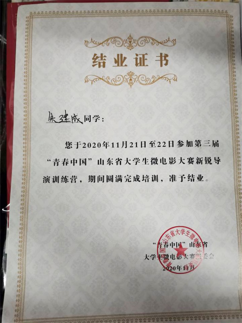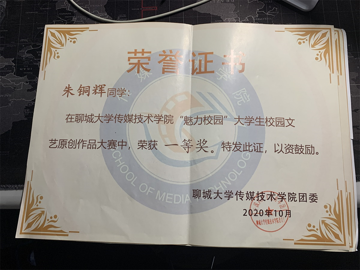 张志伟在数字媒体与动画创意工坊“你与世界相拥只差一台相机”中获得二等奖