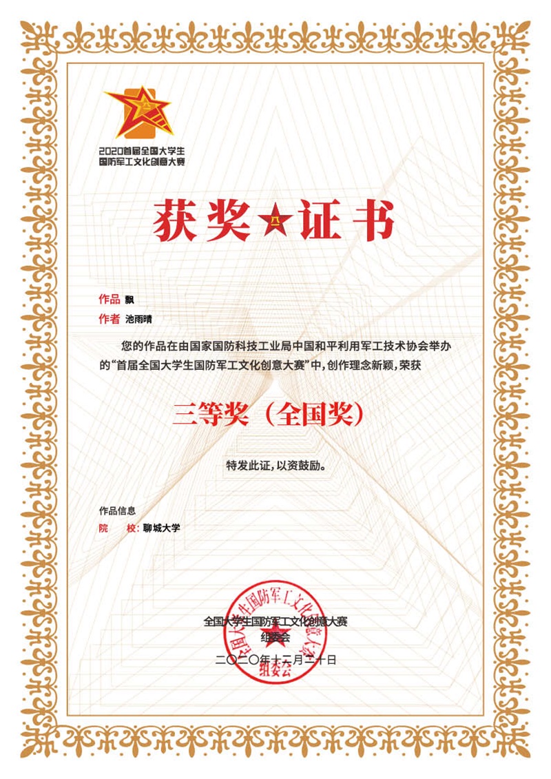 温佳烁 王新灵的作品《印象聊城》获得全国高校艺术十二届作品大赛二等奖