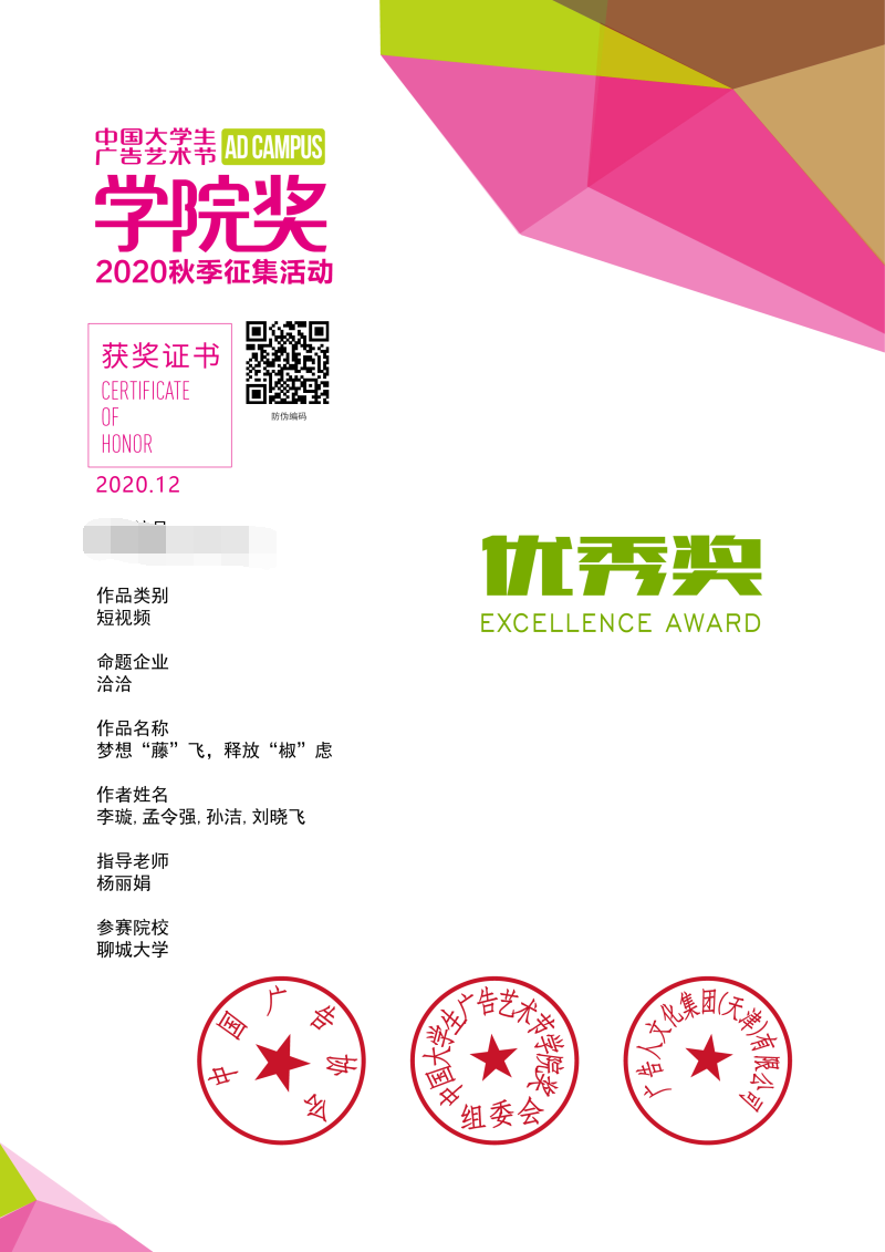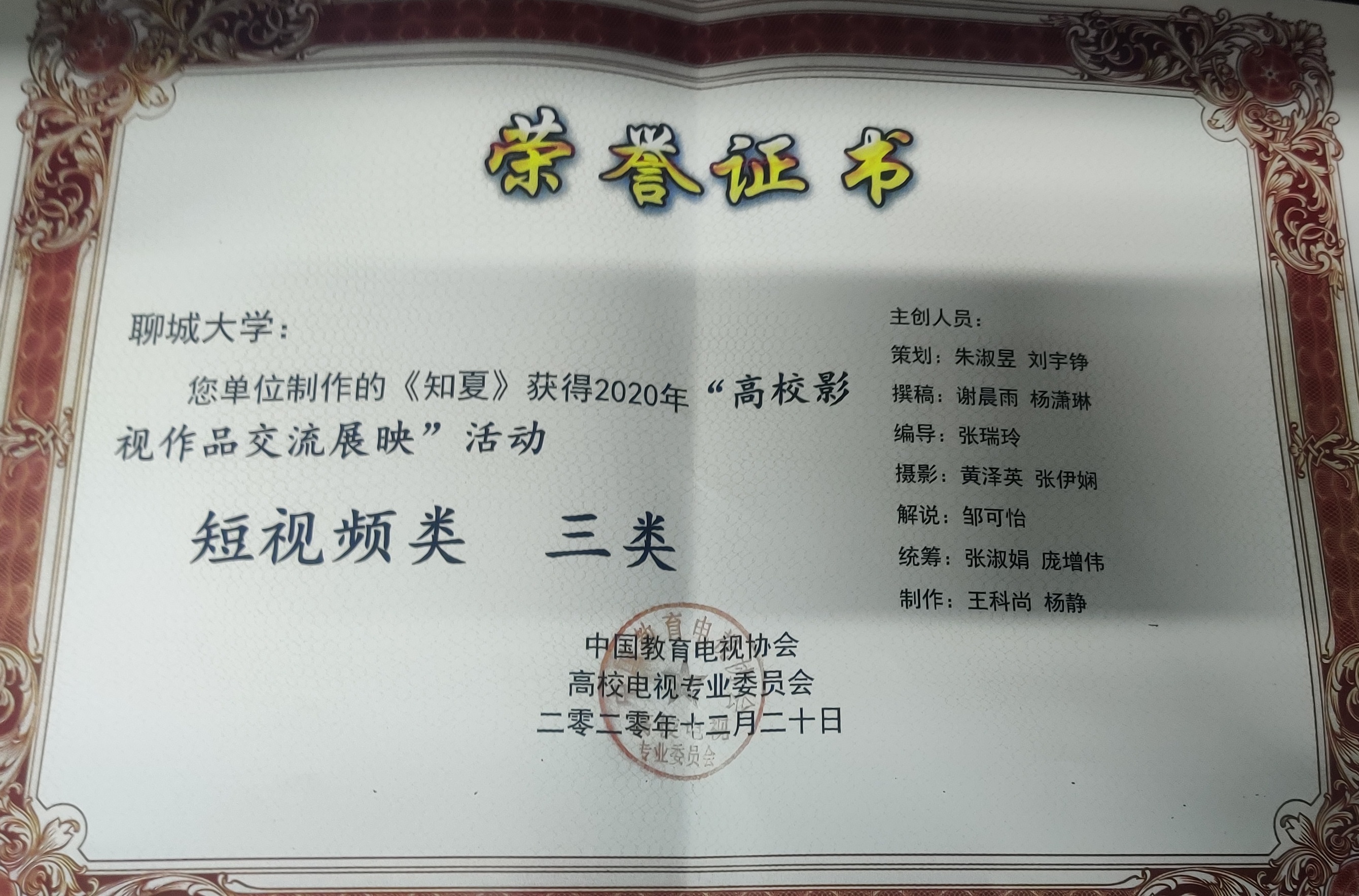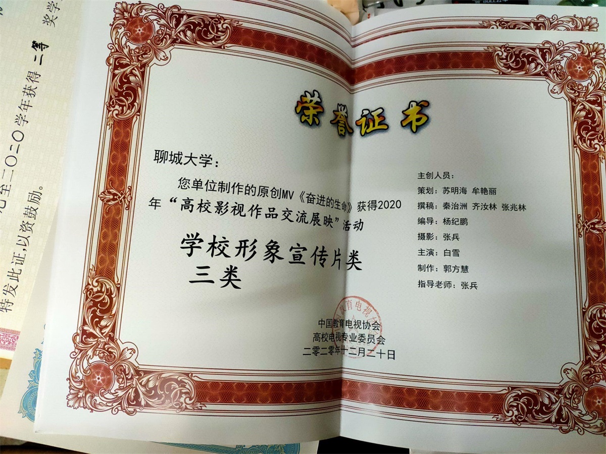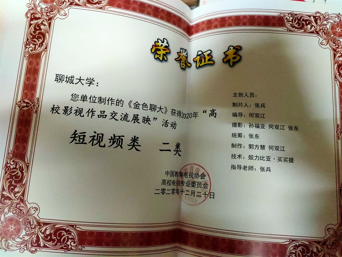 《金色聊大》获得2020年“高校影视作品交流展映”活动短视频类二类