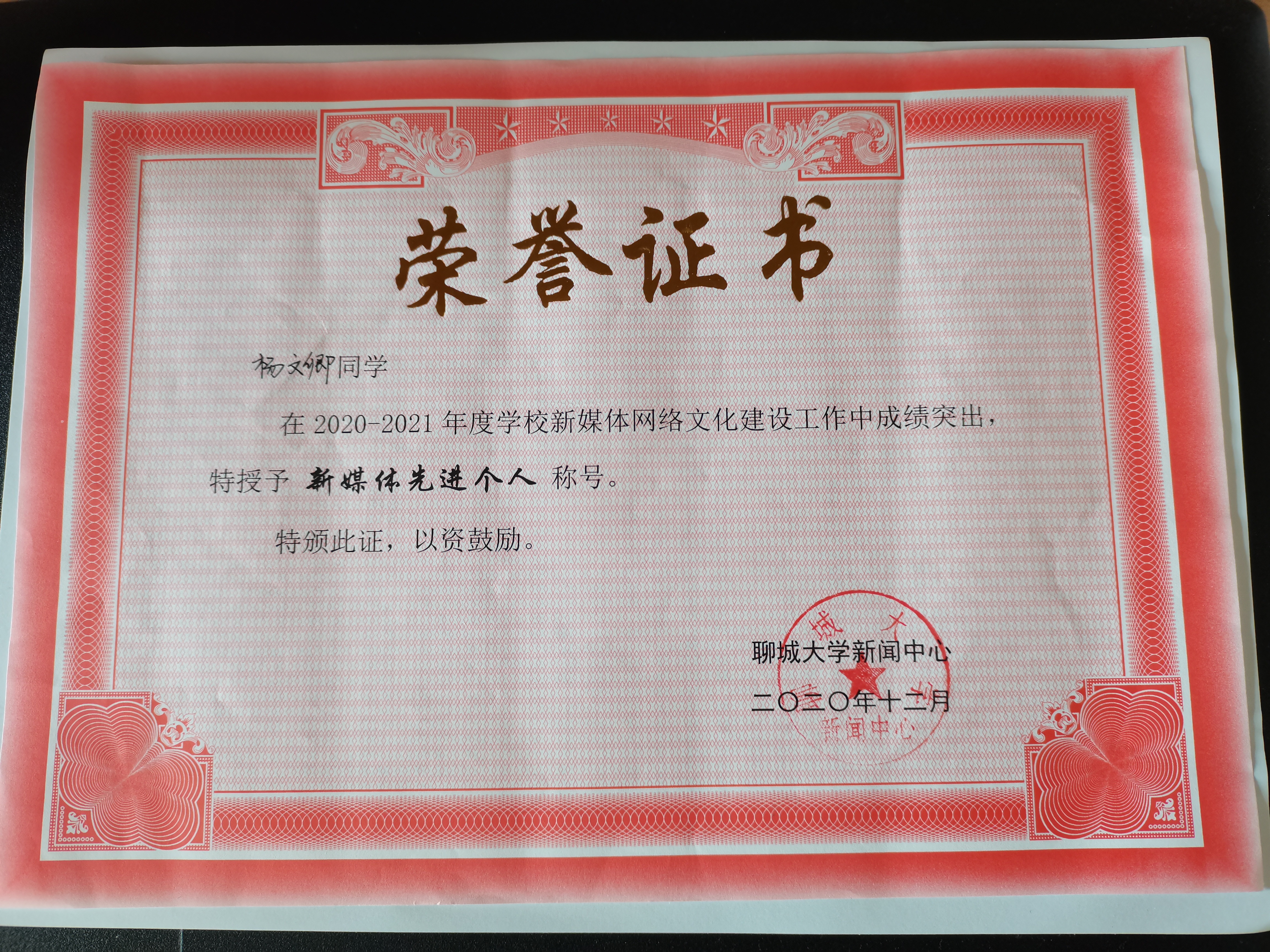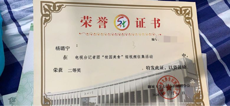 杨璐宁,电视台记者团“校园美食”短视频征集活动二等奖
