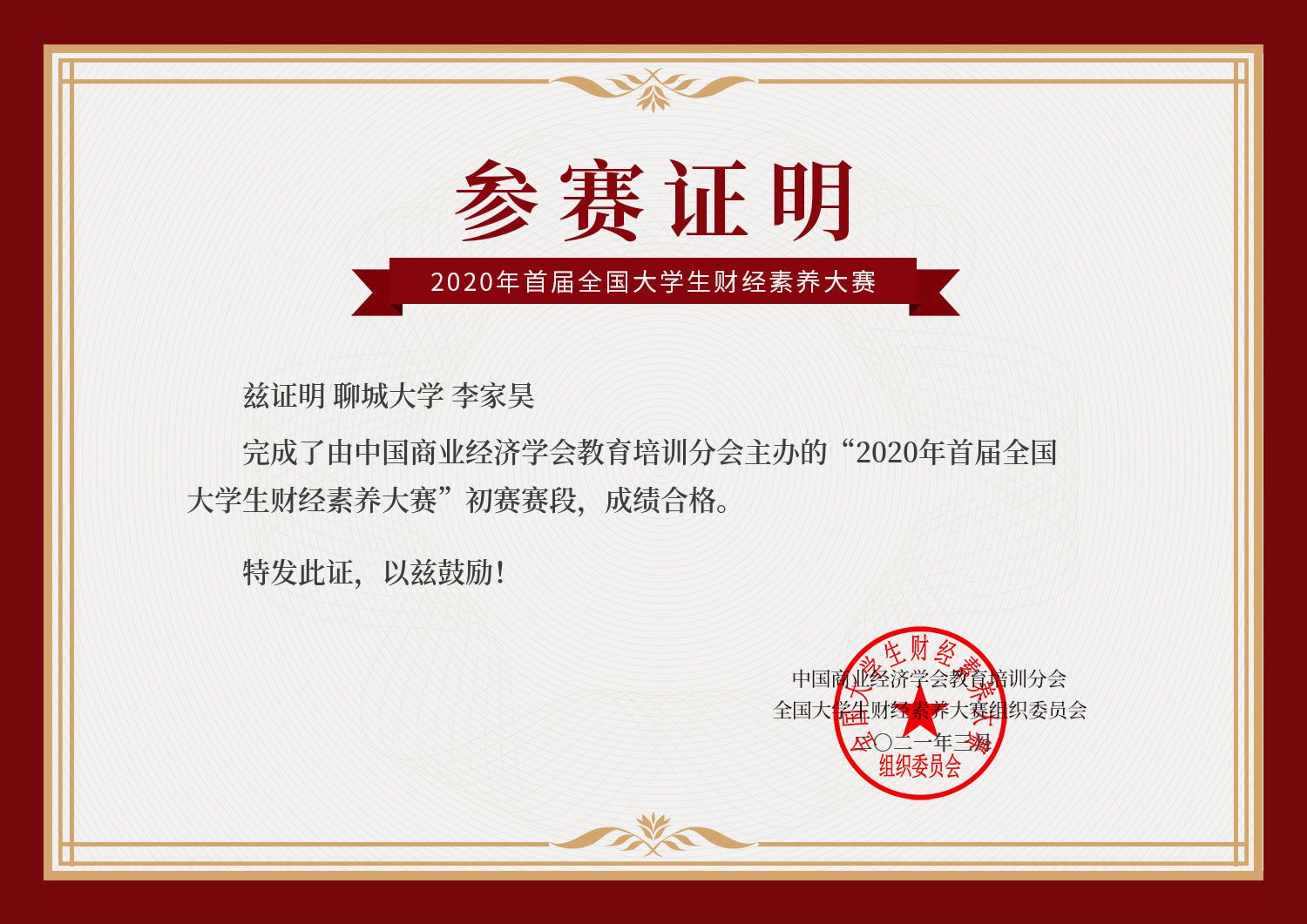 李善东,2020年全国大学生职业发展大赛校级赛优秀奖