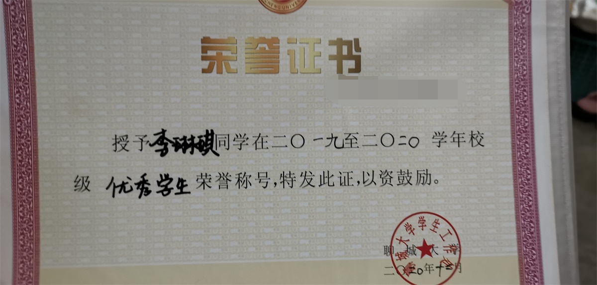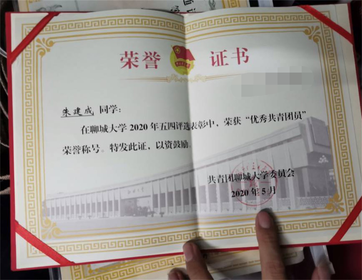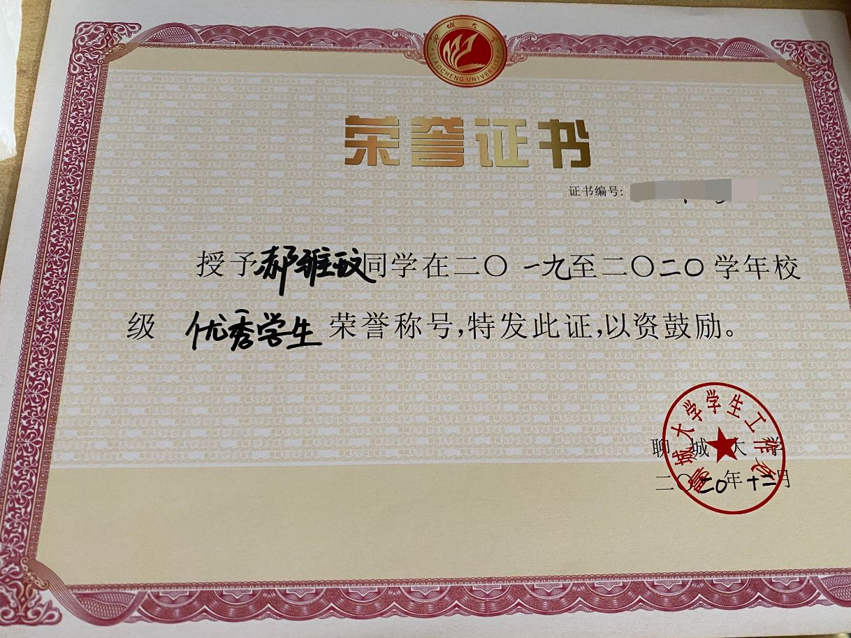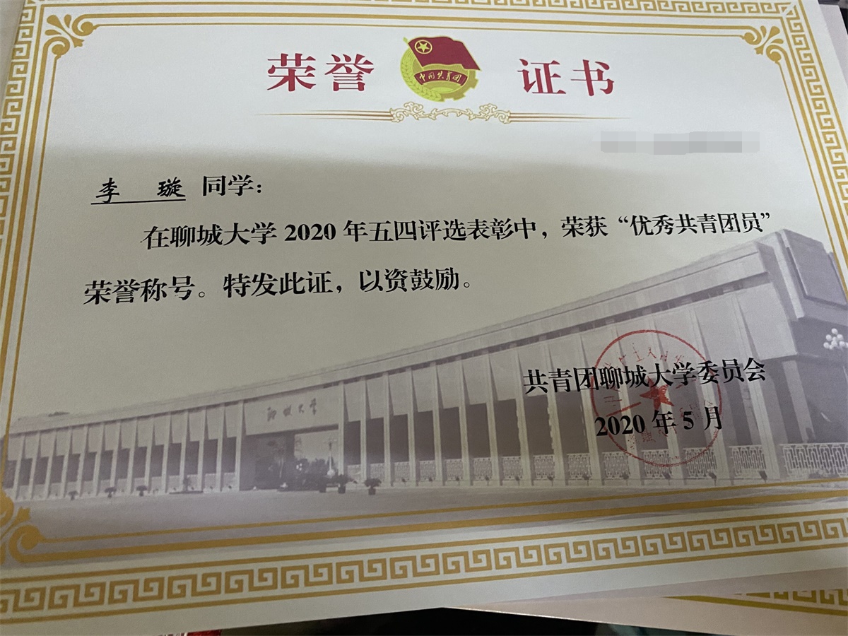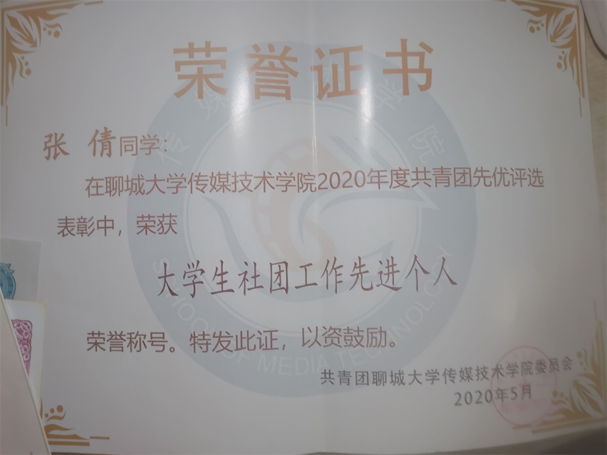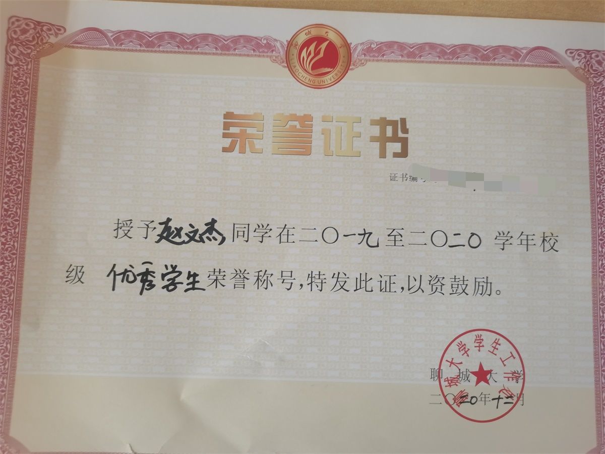孟令强获得校级“共青团思想引领和宣传教育工作先进个人称号