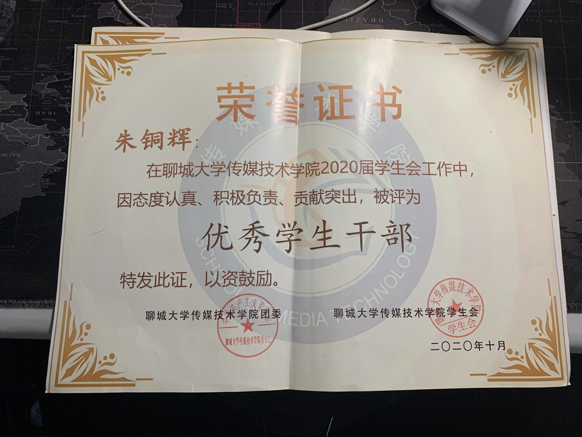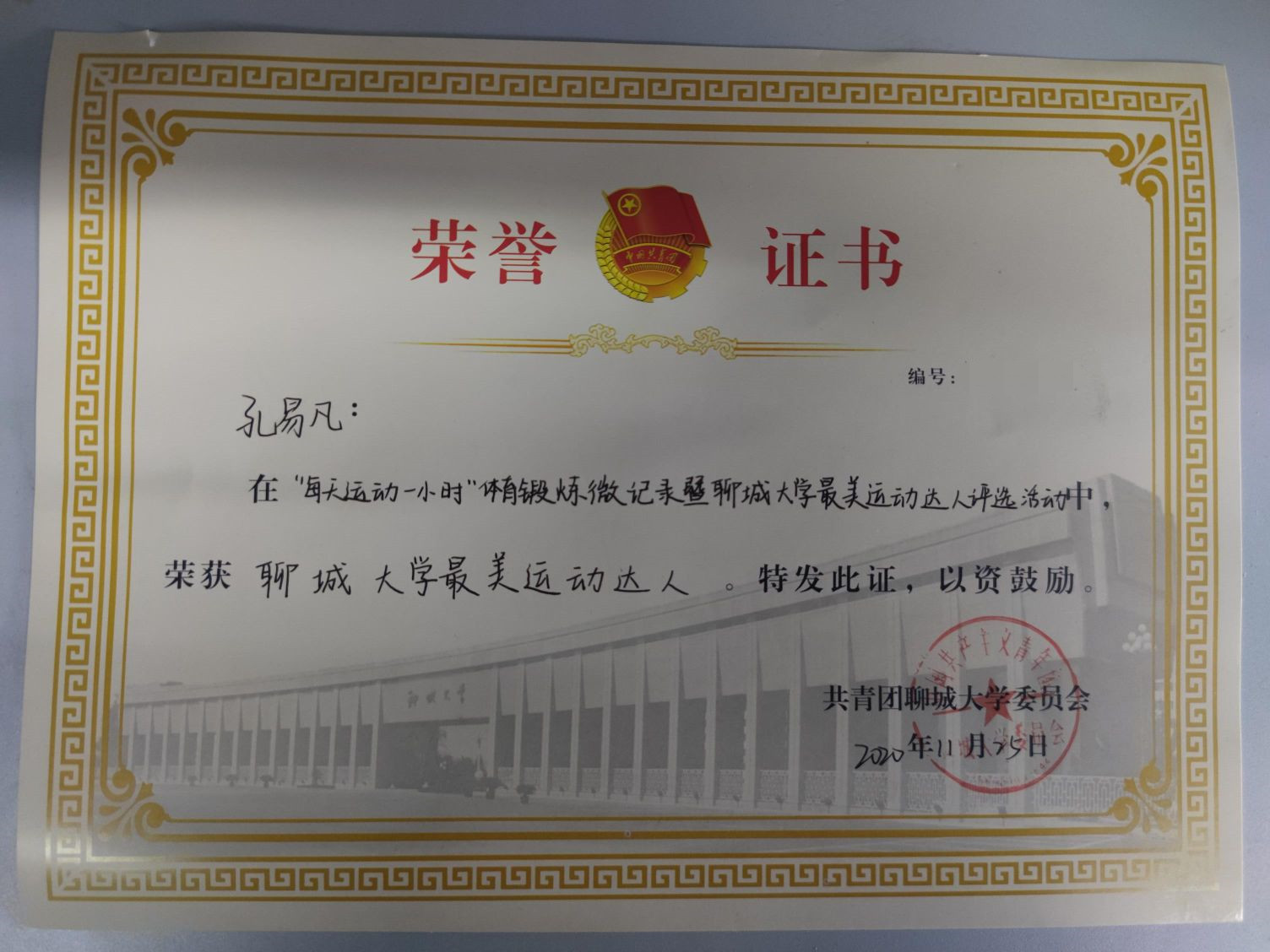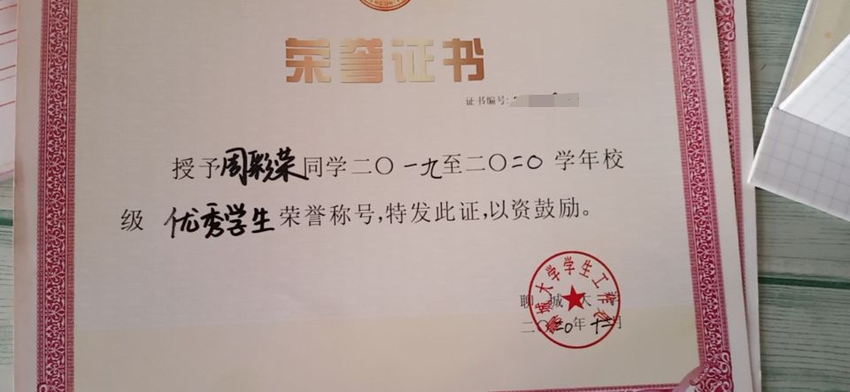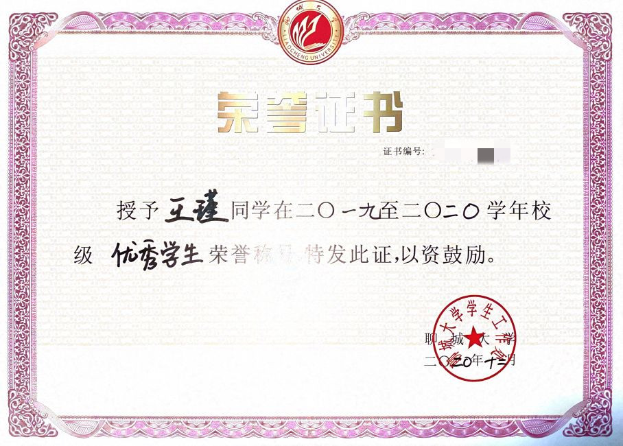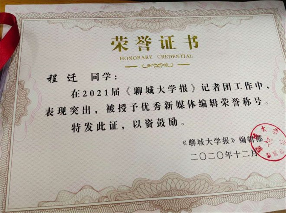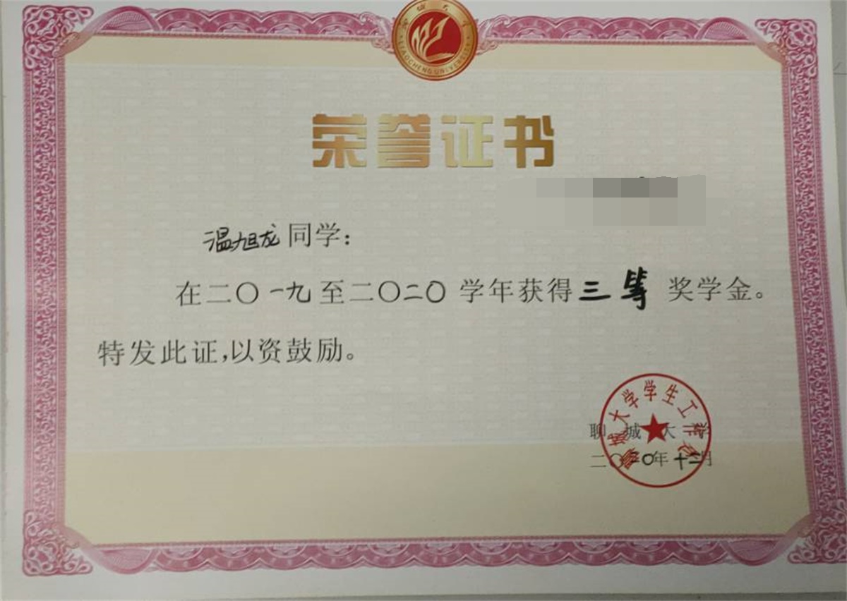 孟令强获得校级“共青团思想引领和宣传教育工作先进个人称号