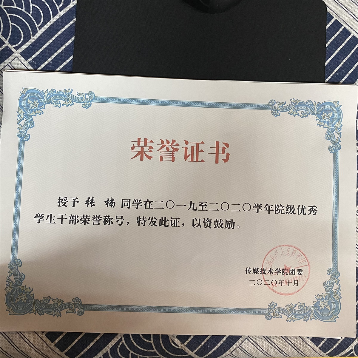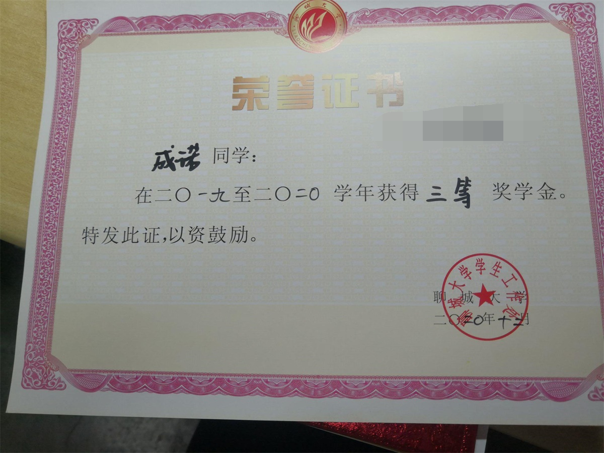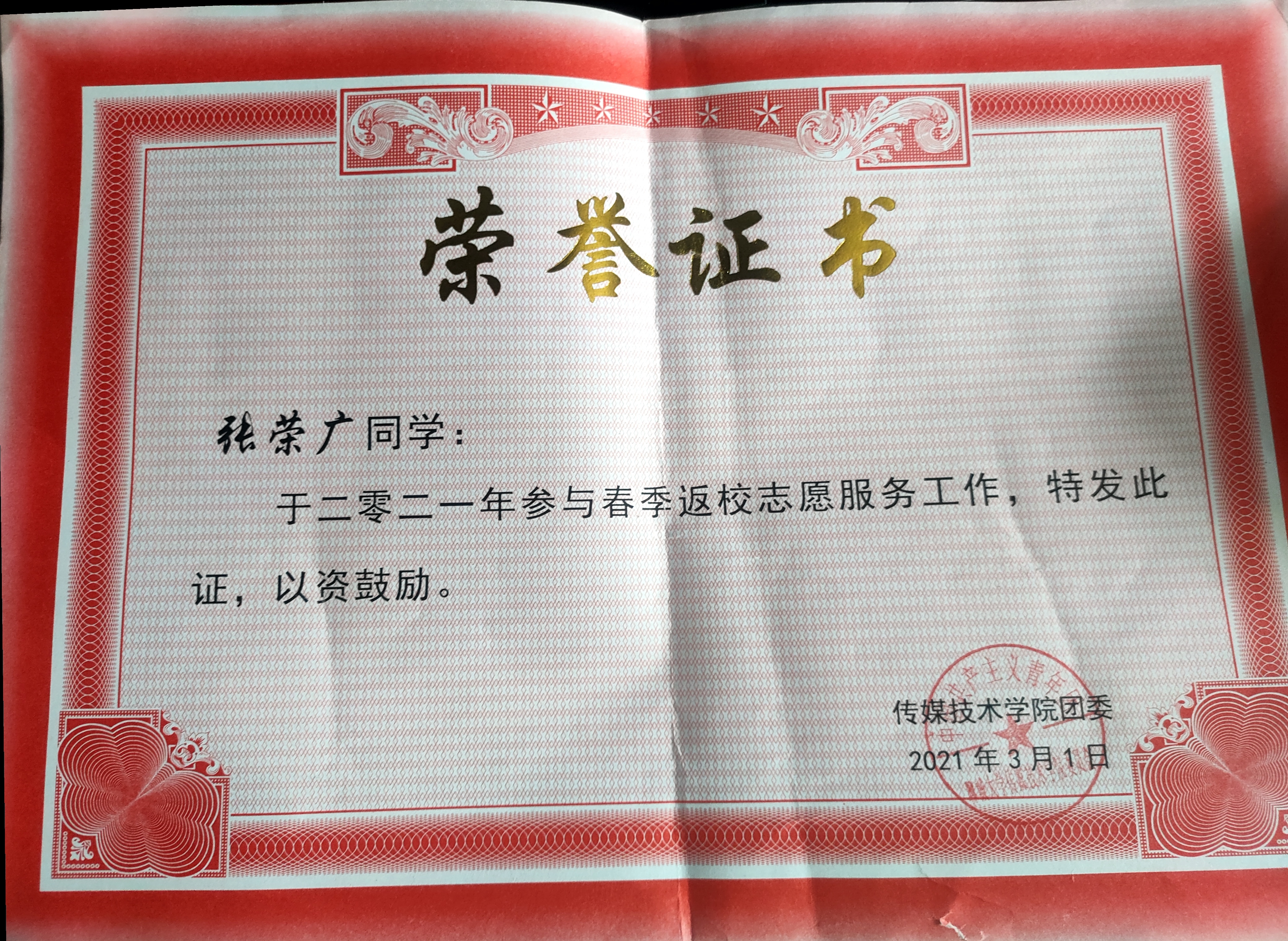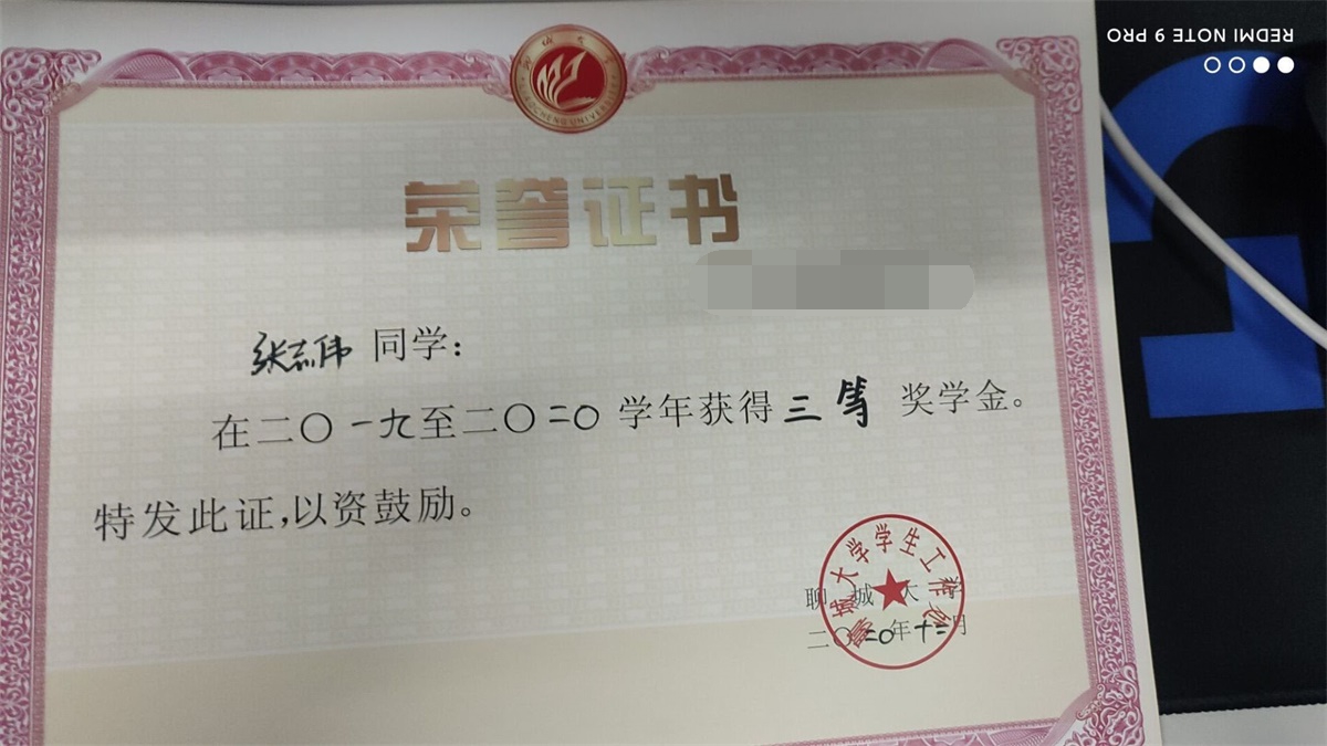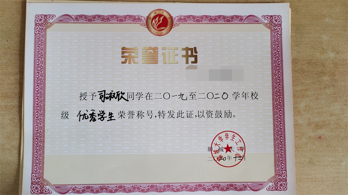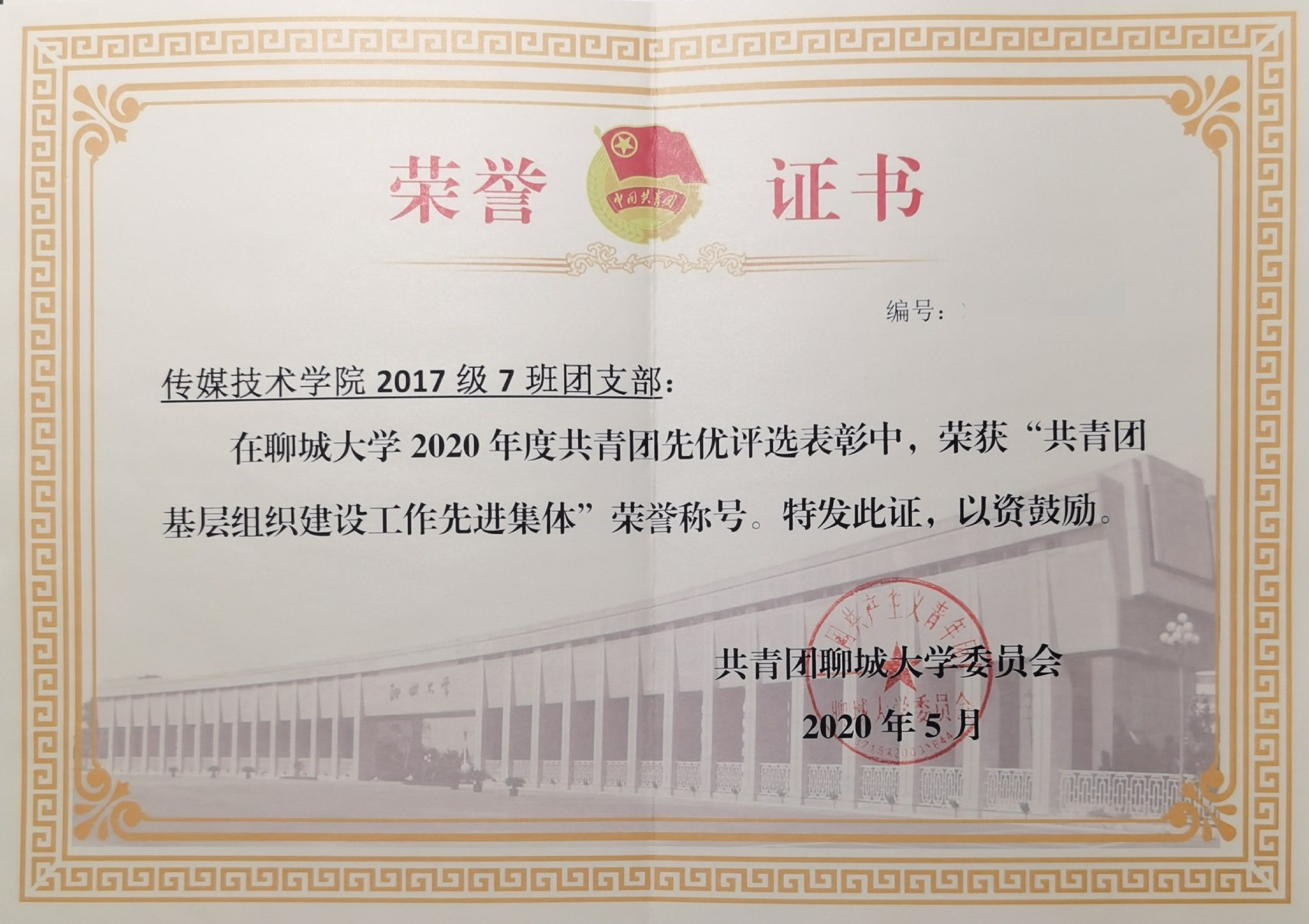 孟令强获得校级“共青团思想引领和宣传教育工作先进个人称号