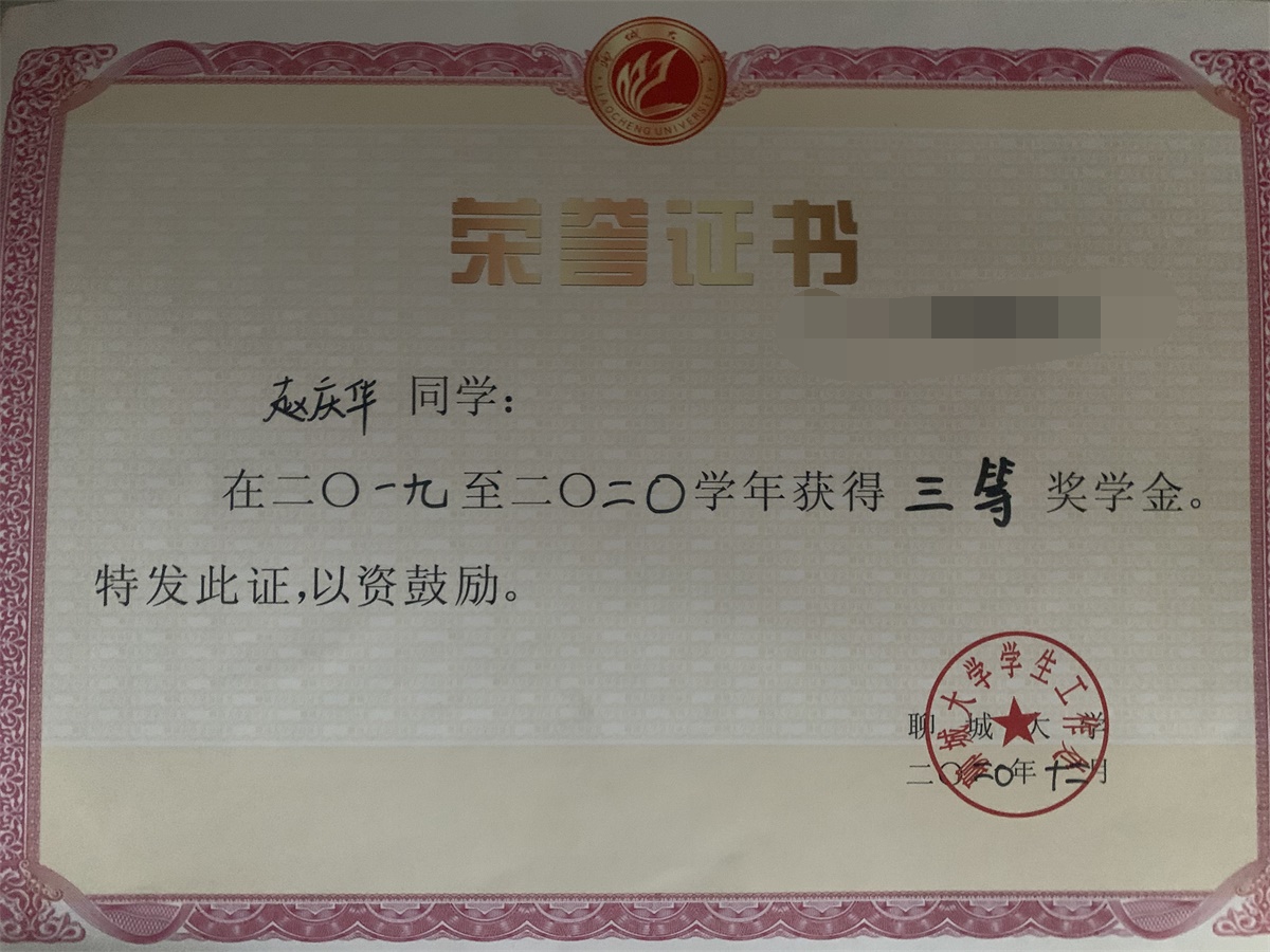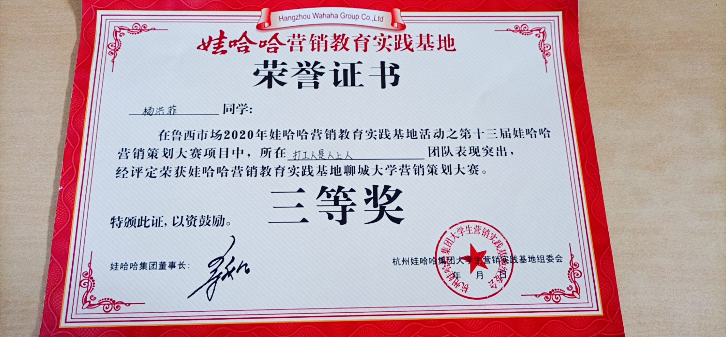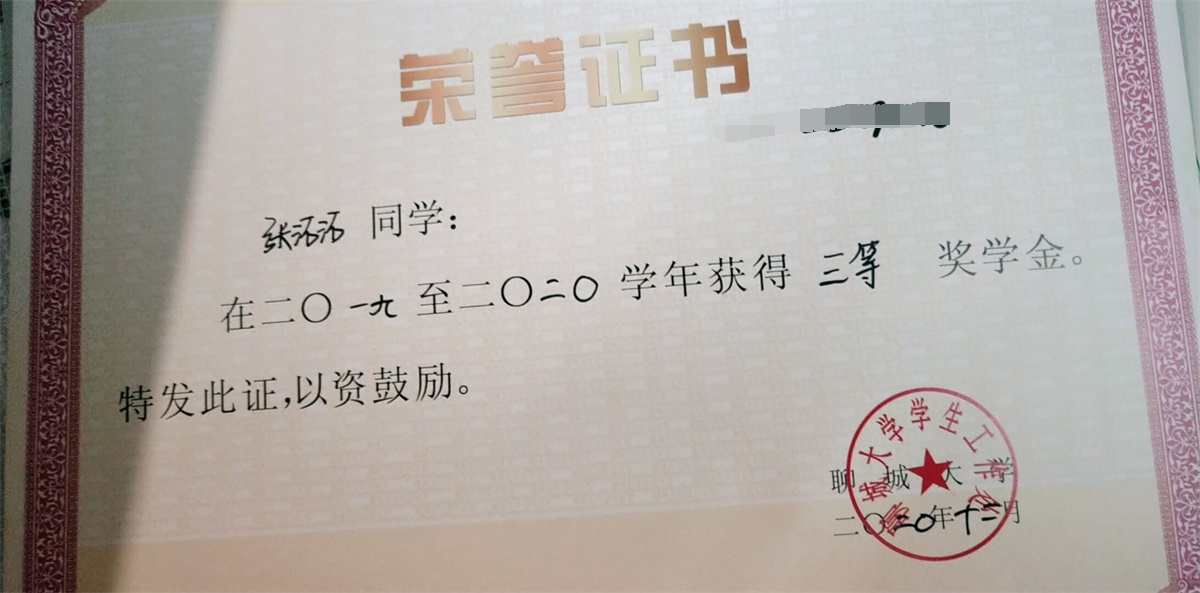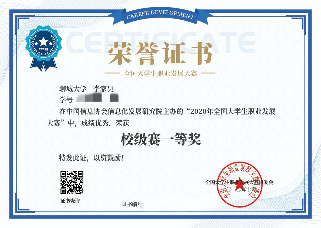 张为康,2020年全国大学生职业发展大赛校级赛三等奖