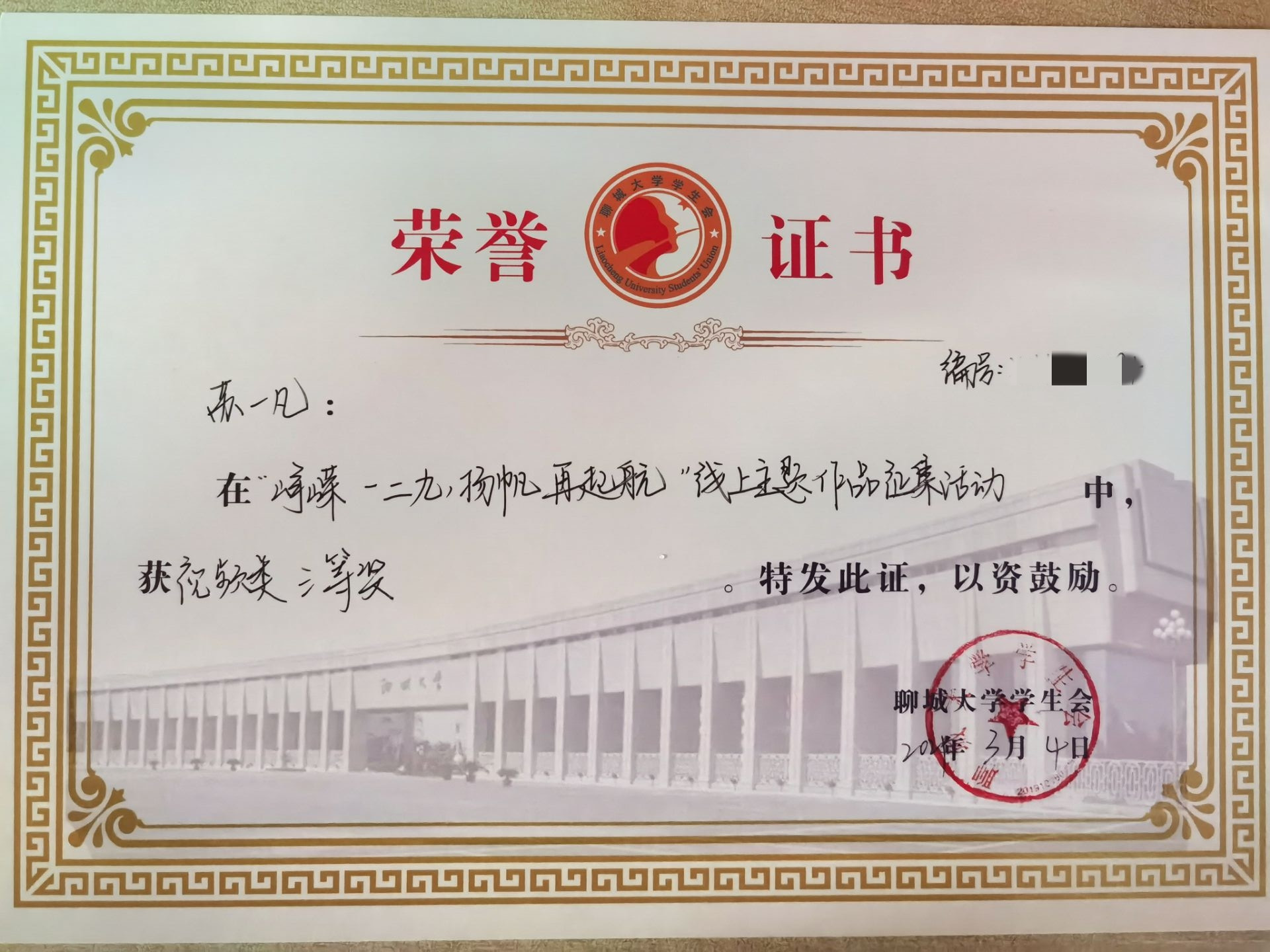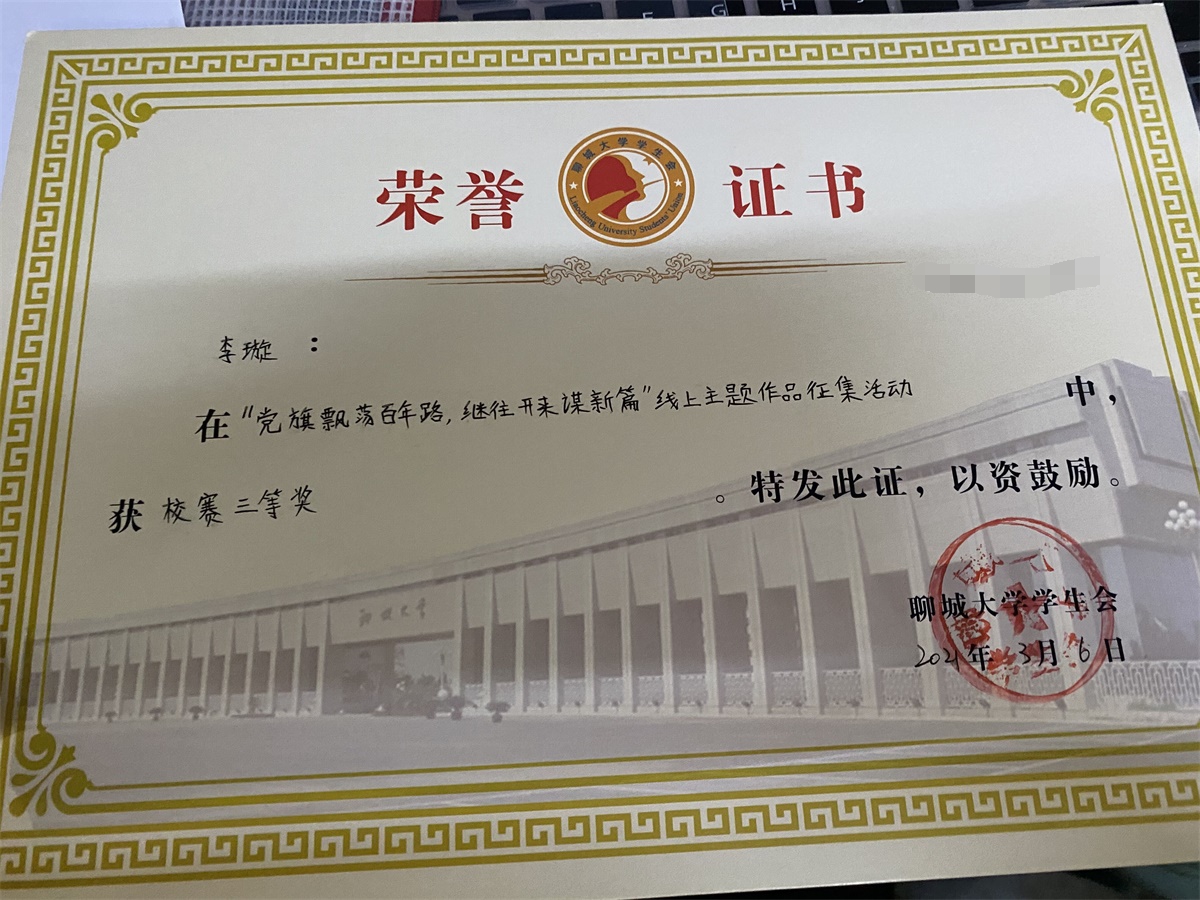 孙龙腾,“党旗飘荡百年路,继往开来谋新篇”线上主题作品征集活动校赛三等奖