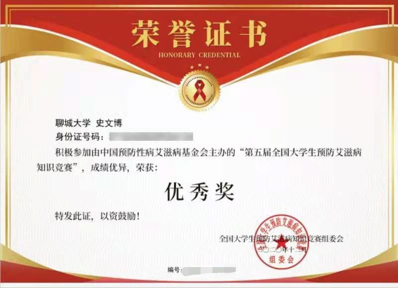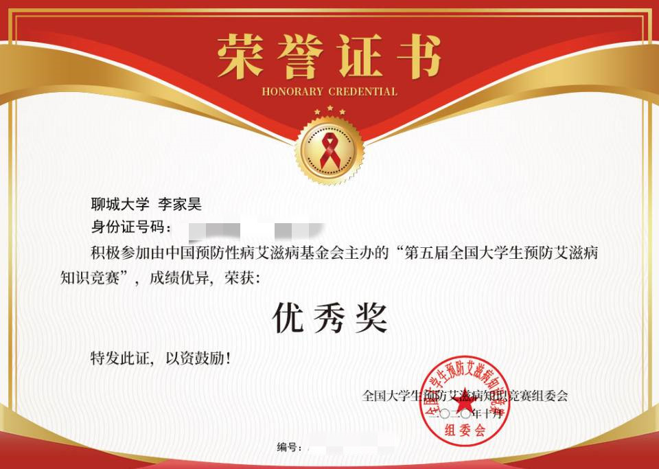 李家昊 “第五届全国大学生预防艾滋病知识竞赛” 优秀奖