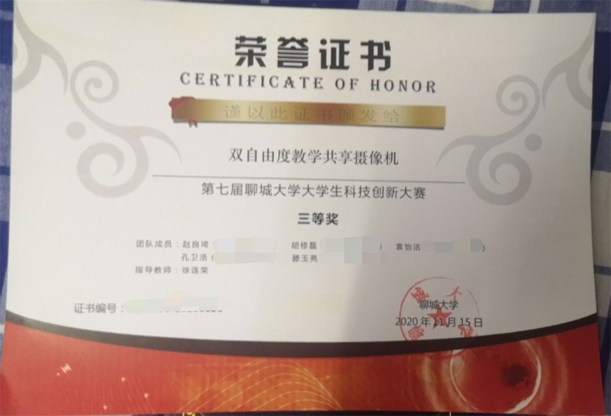 双自由度教学共享摄像机获得第七届太阳集团大学生科技创新大赛三等奖