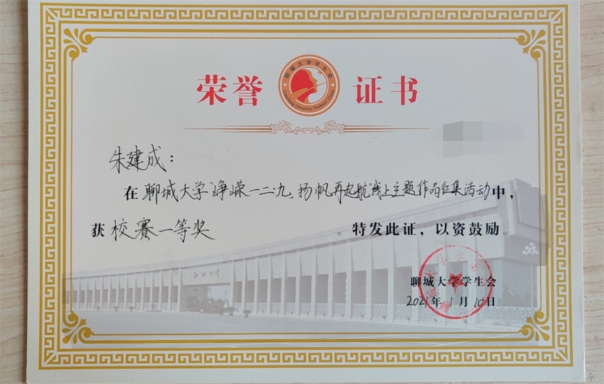 朱建成获得太阳集团“峥嵘一二九,扬帆再起航”校赛一等奖