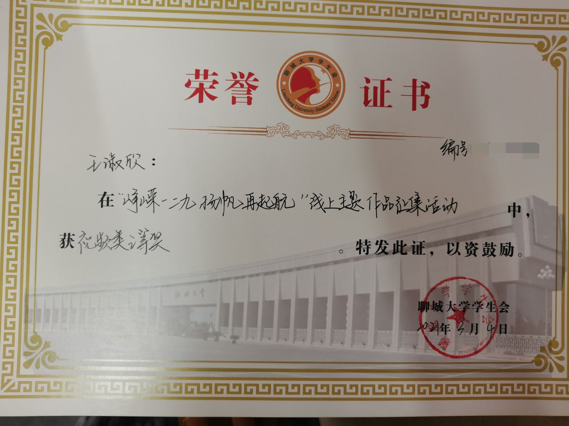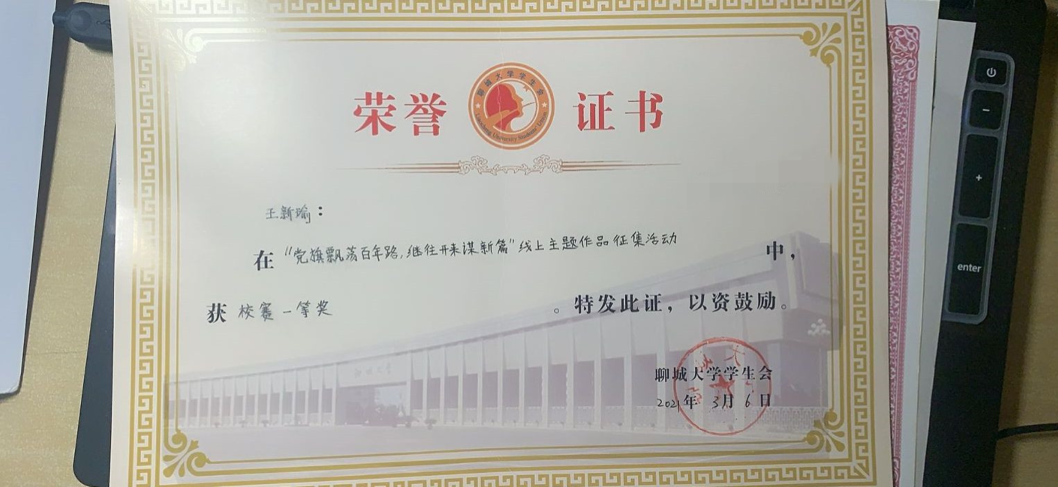 王新瑜,“党旗飘荡百年路 继往开来谋新篇”线上主题作品征集活动校赛一等奖