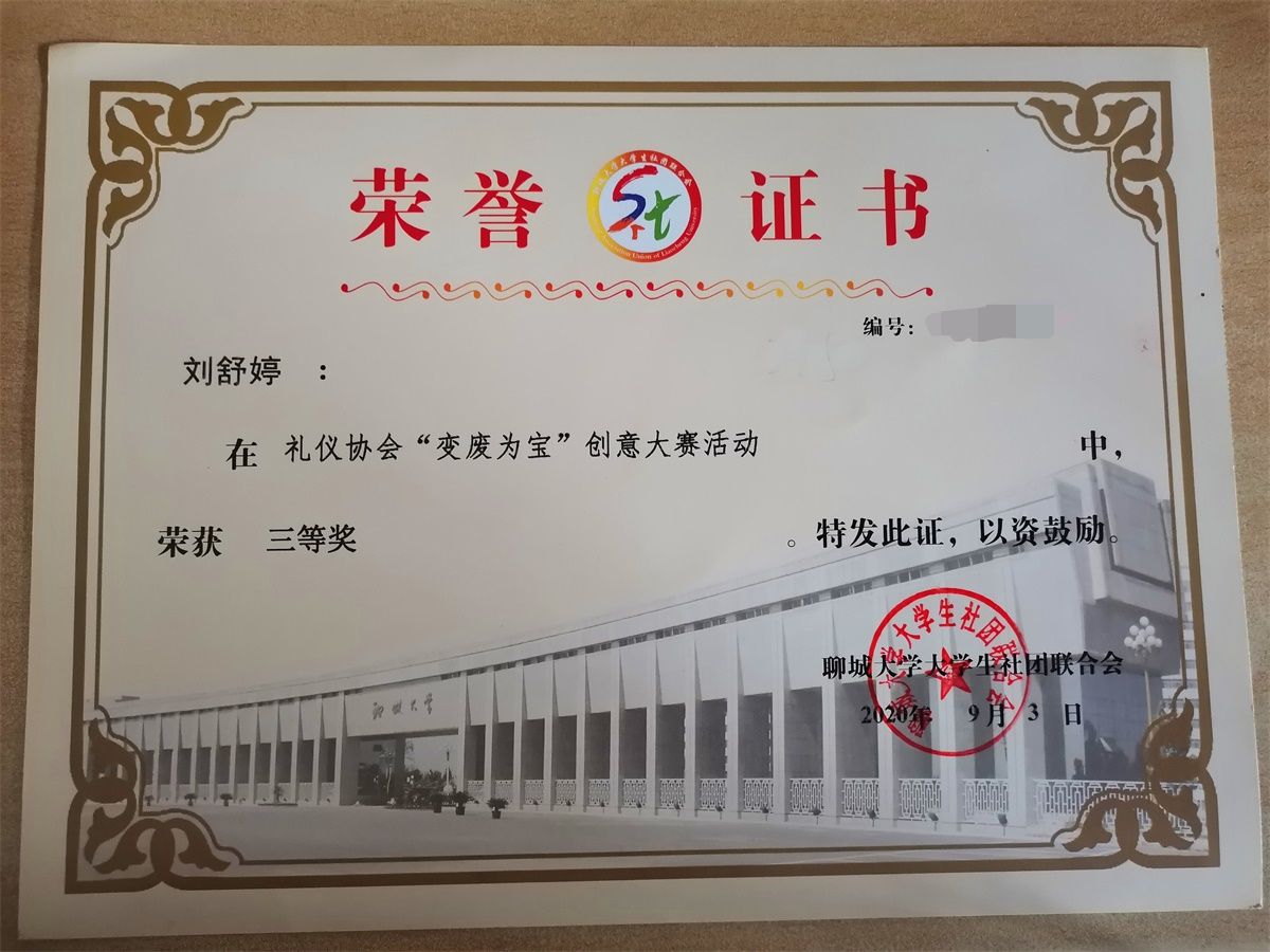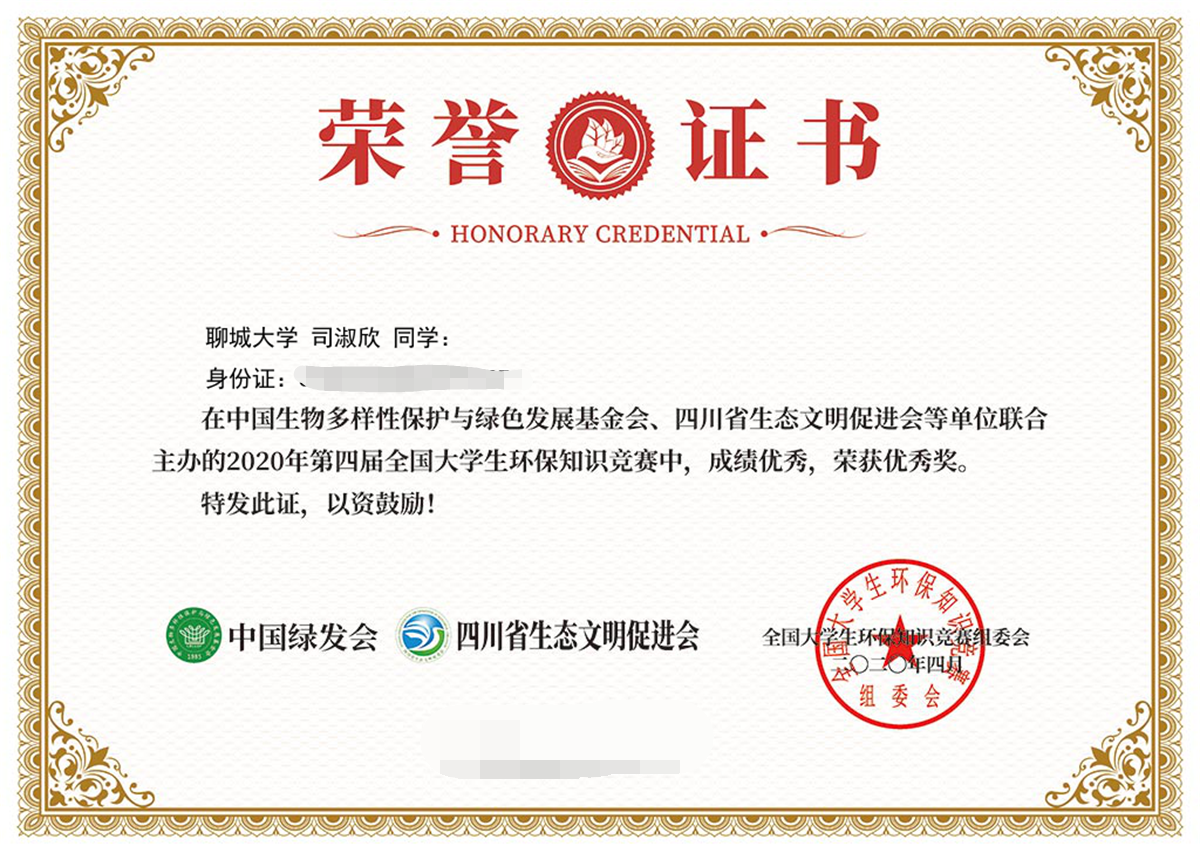 葛戈,2020年第四届全国大学生环保知识竞赛优秀奖