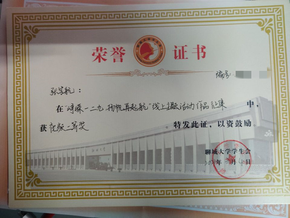 张字航,“党旗飘荡百年路,继往开来谋新篇”线上主题作品征集活动校赛三等奖