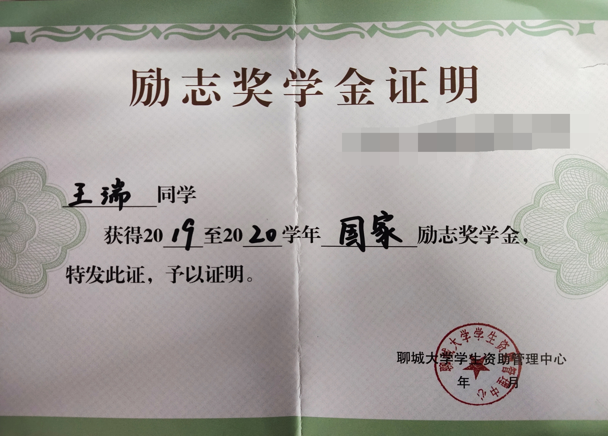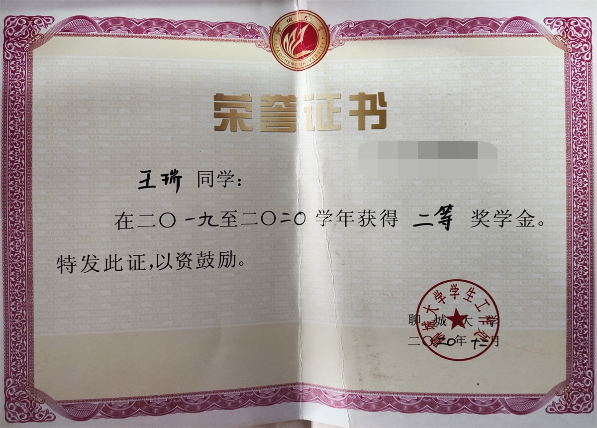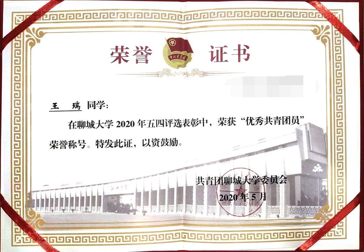 王瑞,太阳集团2020年五四评选表彰中“优秀共青团员”