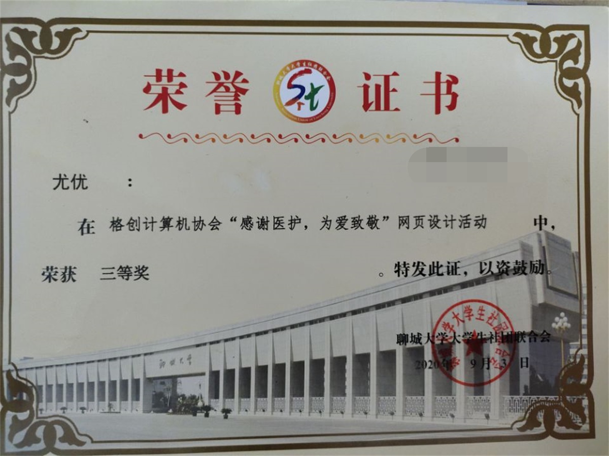 张志伟获得“格创计算机协会”P你所想 E有内涵“PS设计大赛二等奖
