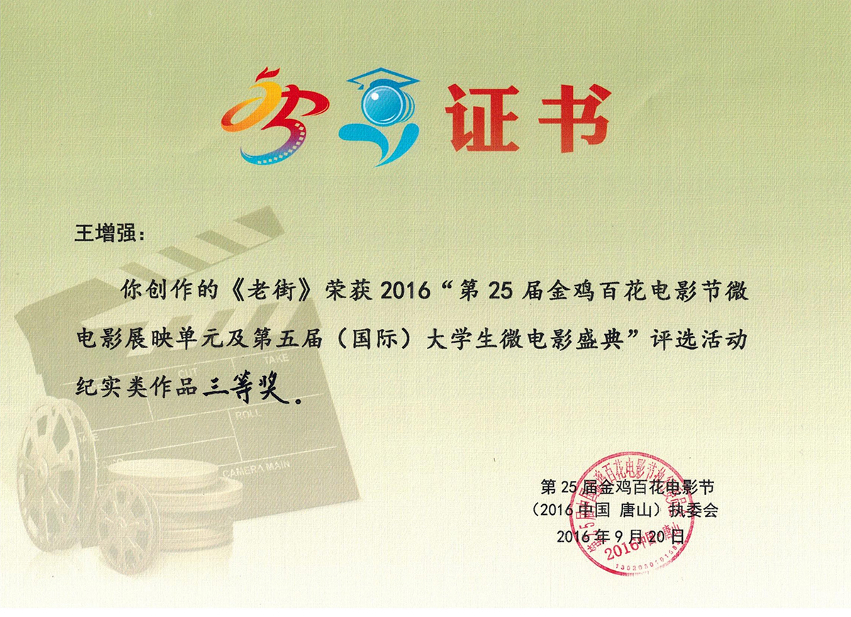 王新蕊,第三届“青春中国”山东省大学生微电影大赛二等奖
