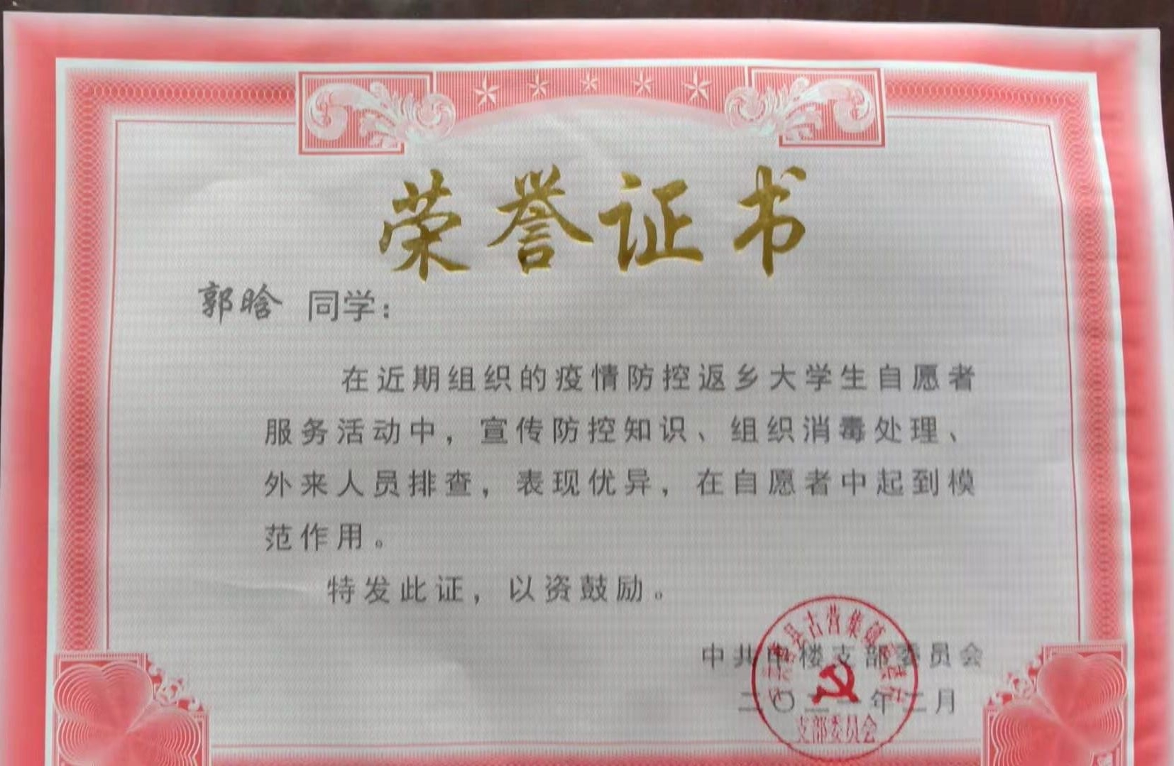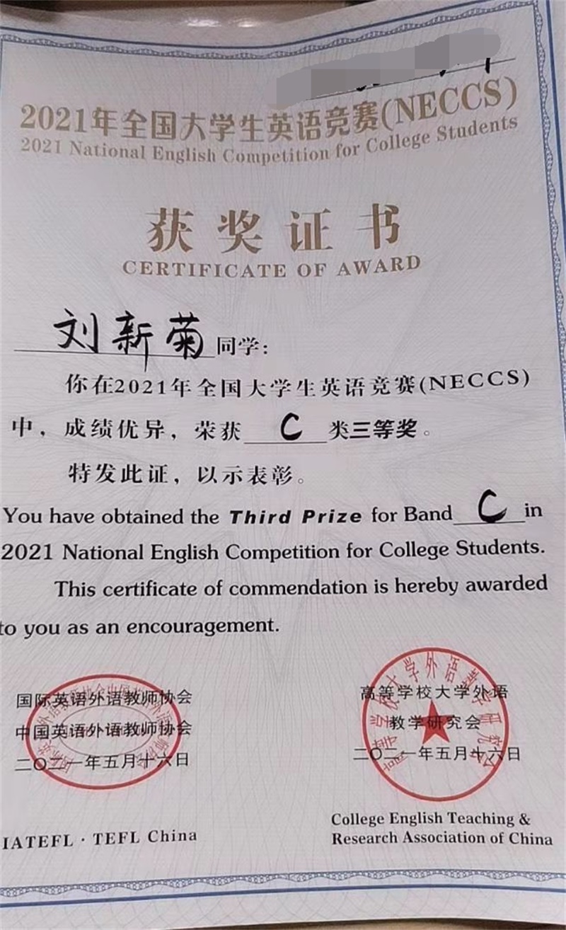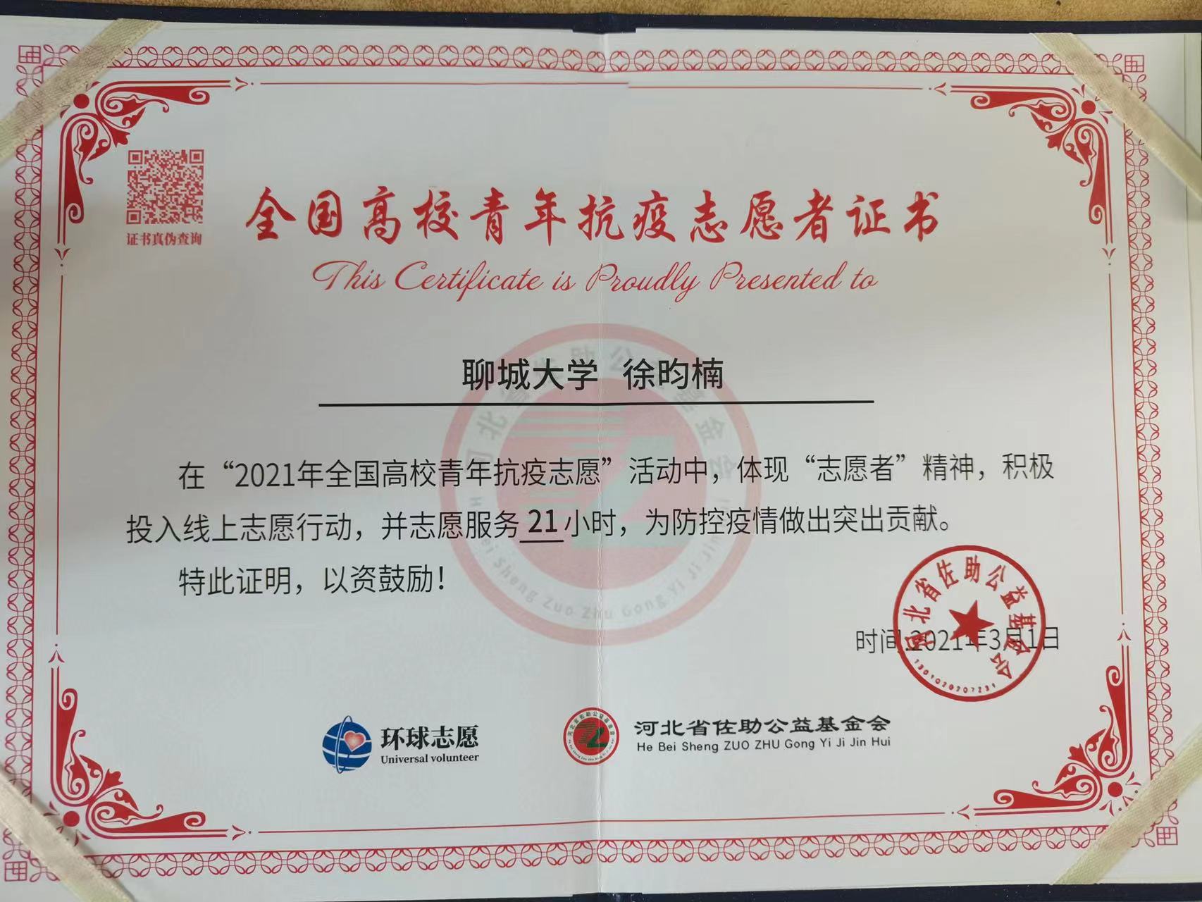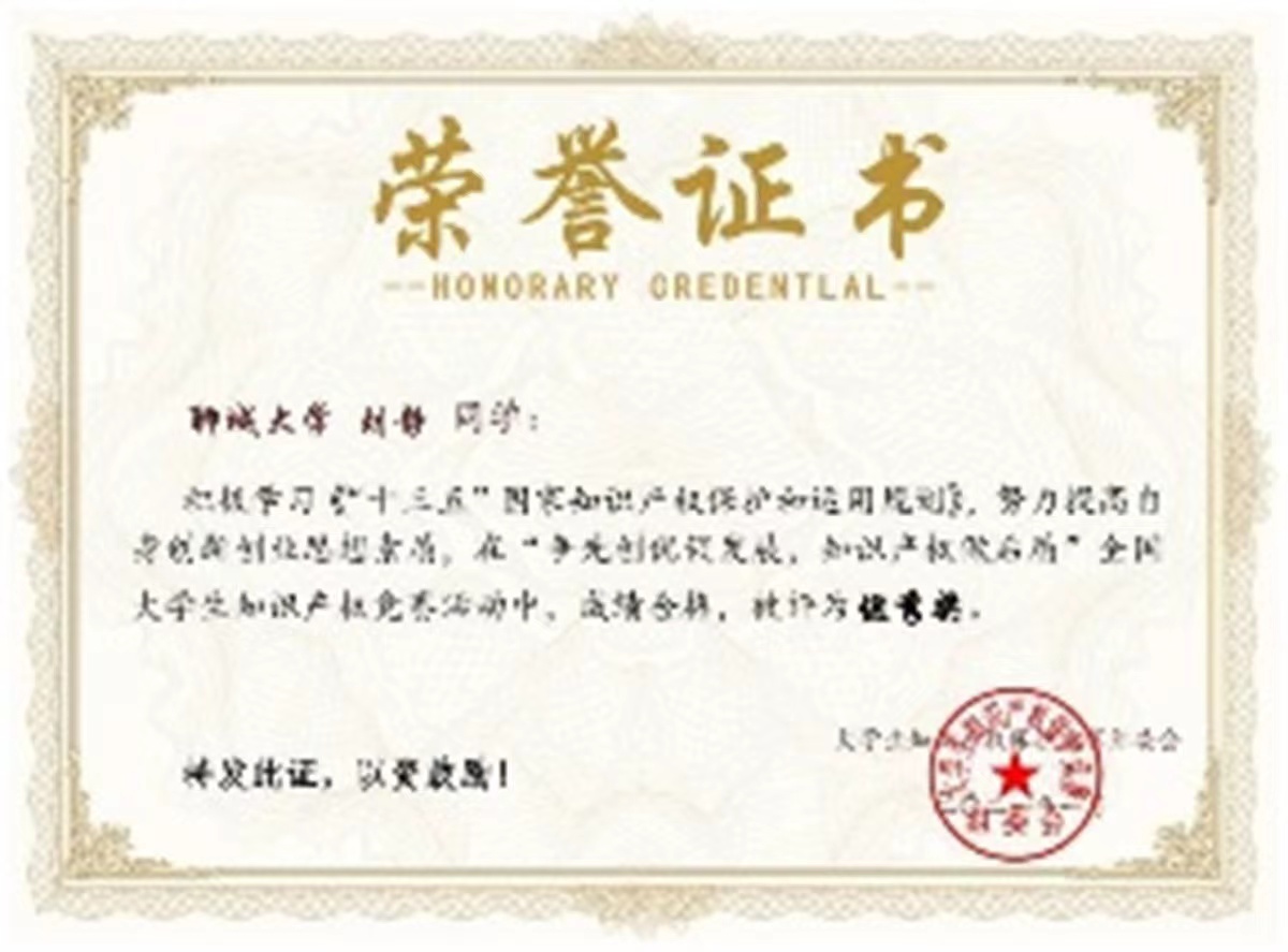 葛戈,2021年第五届全国大学生环保知识竞赛优秀奖