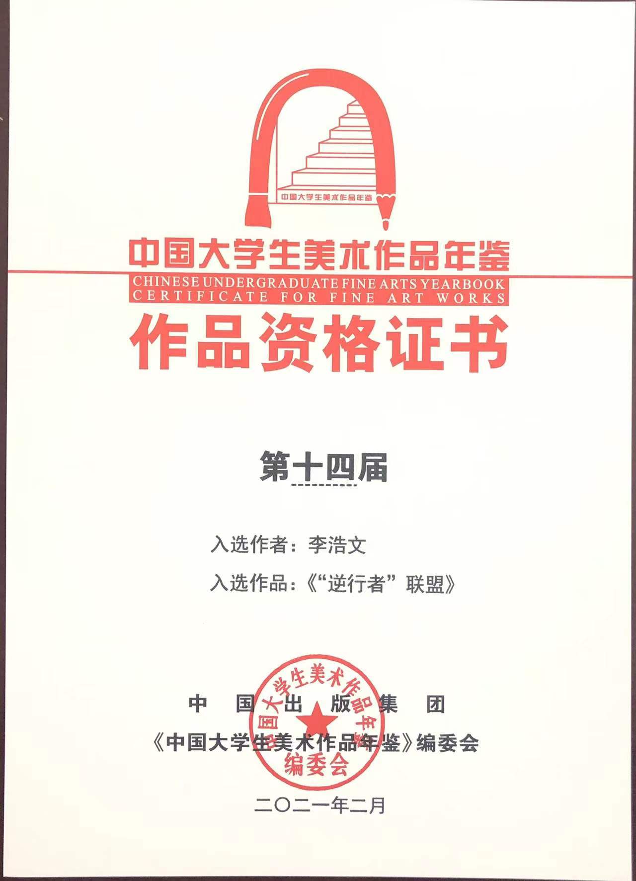 李浩文,第十四届中国大学生美术作品年鉴入围奖(1)