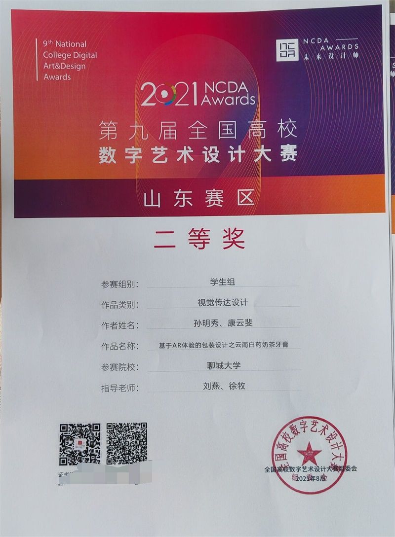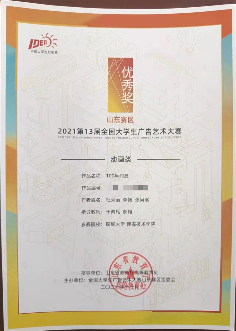 刘丽霞、李从睿,2021第13届大学生广告艺术大赛优秀奖(山东赛区)