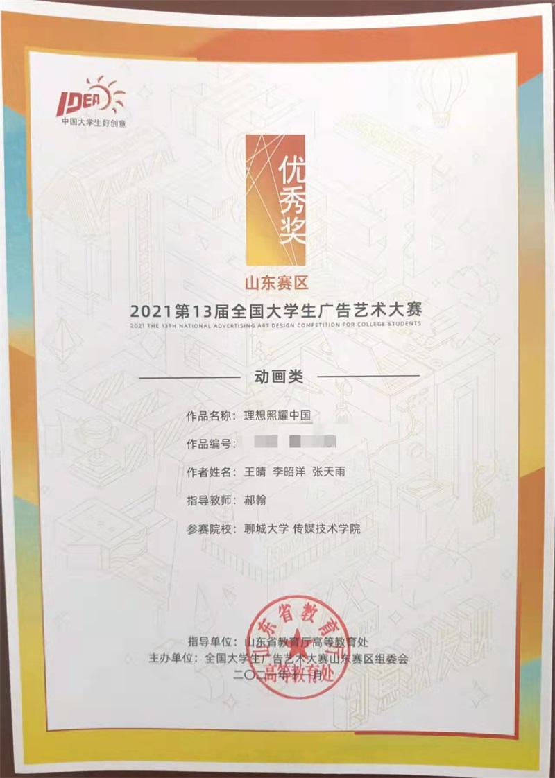 王晴、李昭洋、张天雨,2021第13届大学生广告艺术大赛优秀奖(山东赛区)