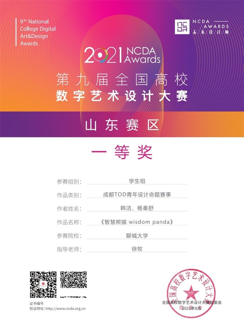 韩洁、杨秦舒,第九届全国高校数字艺术设计大赛一等奖