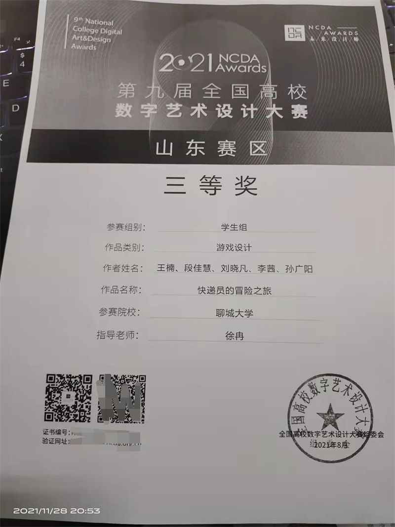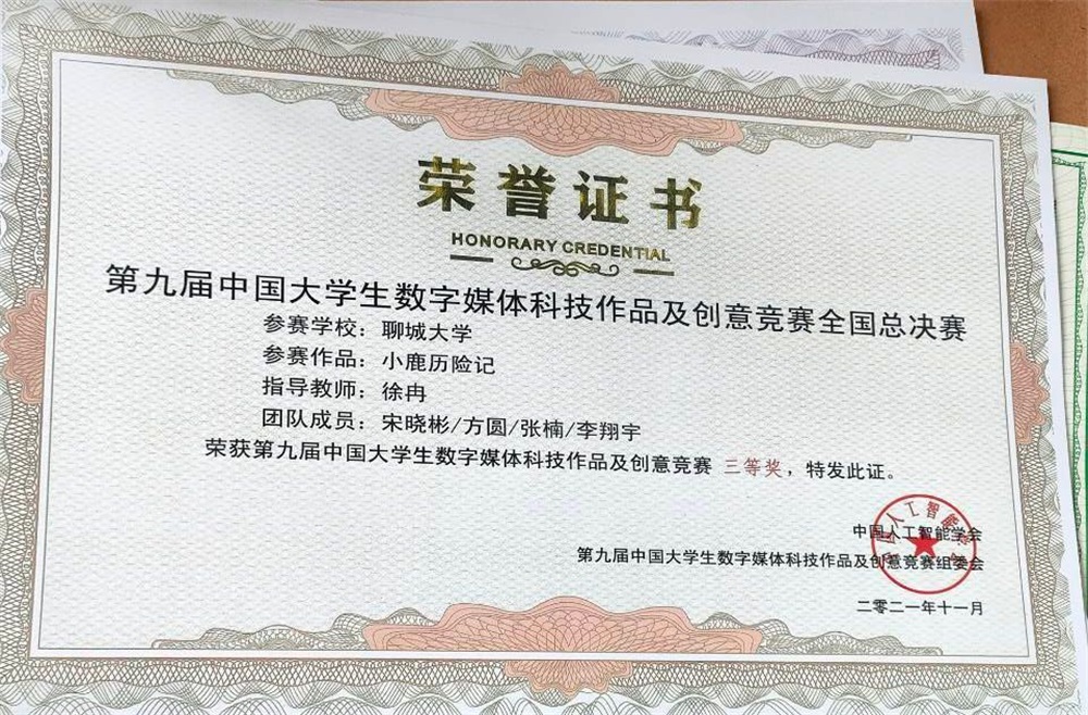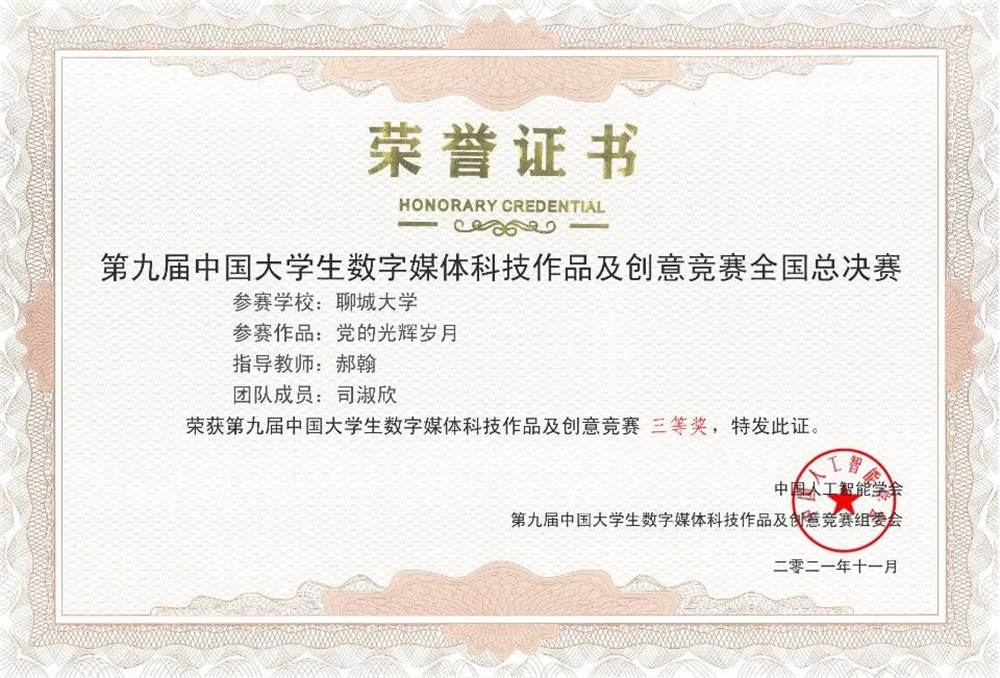 司淑欣,第九届中国大学生数字媒体科技作品及创意竞赛三等奖