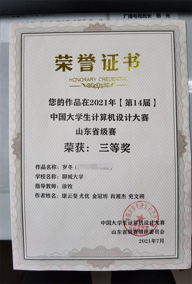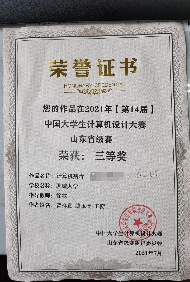 曾祥鑫、腾玉亮、王衡,第14届中国大学生计算机设计大赛三等奖