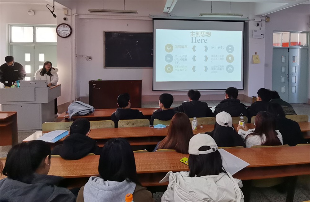本次活动主要通过线下演说的方式进行,由同学们自行组合,完成剧本创作和影视拍摄两项工作,并制作相关PPT进行解说。主持人解程龙同学向大家介绍本次活动的主要流程,即每组派出一名代表,从创作初衷、创作感悟等几个方面,向班级同学进行剧本讲解和作品展示。随后,同学们自告奋勇、依次有序地上台进行讲解。其中,付子珂同学带来小宅剧组的作品《谈笑岂能在指尖》,以微视频的形式向大家展示手机有害的一面,同时呼吁大家放下手机、享受生活;汪莉等同学带来的《抵制校园贷,青春不负债》,以感情真挚、逻辑清晰的语言,从作品本身出发,讲述作品创作的灵感和从中得到的收获。