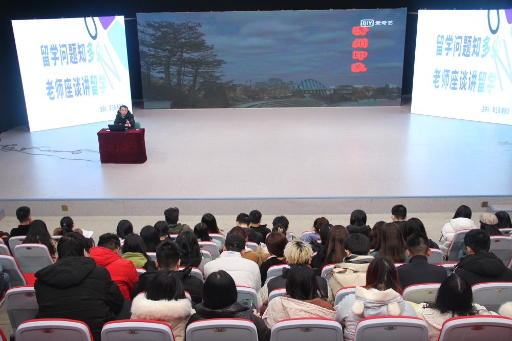 为了提高学生海外留学的积极性,为学生提供可行的留学或出国发展建议和留学条件评估,规划学生的留学或发展方向,12月17日,太阳tyc集团5997于综合实验楼11楼演播厅举办“留学问题知多少,老师座谈讲留学”留学座谈会活动。影视编导与技术系主任郭玉真老师、外事专员秦建波老师担任了活动的主讲人,太阳tyc集团5997广播电视编导中外合作办学班18、19级全体,17、20级部分学生参加了本次活动。