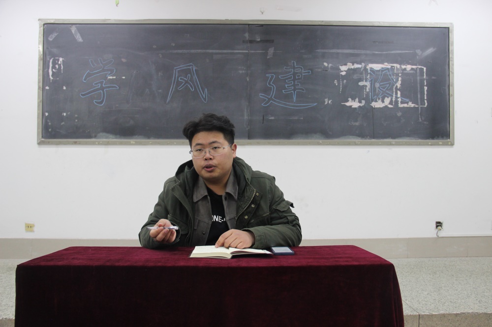 纸上得来终觉浅,绝知此事要躬行。活动开始,杨家泽同学先以房文迪同学和张焕强同学取得的杰出成果为例激励同学们积极投身于学院相关学风建设的活动中去,不断丰富自己的课余生活。他提到,学院十分重视学风建设,始终争当优良学风的引领者,近些年在个人与学院的不懈努力下,大家均为学院学风建设做出许多实质性贡献。