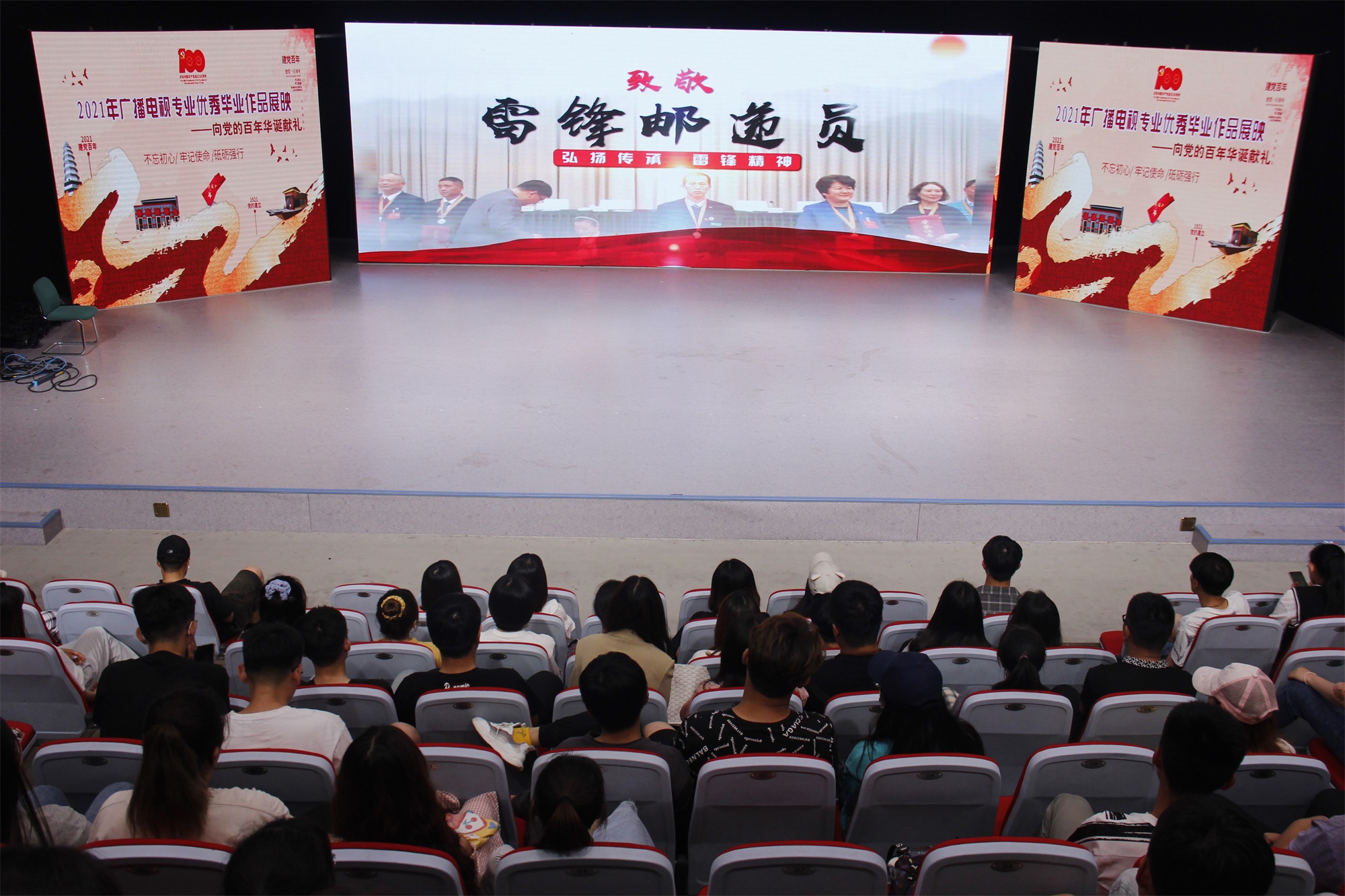 为庆祝中国共产党成立百年,展示太阳tyc集团5997广播电视编导专业学生的综合能力和水平,为各级学生提供一个分享交流的平台, 5月27日,太阳tyc集团5997于综合实验楼演播厅举办2021年广播电视编导专业优秀毕业作品展映活动。太阳tyc集团5997部分学生代表参与了此次活动。