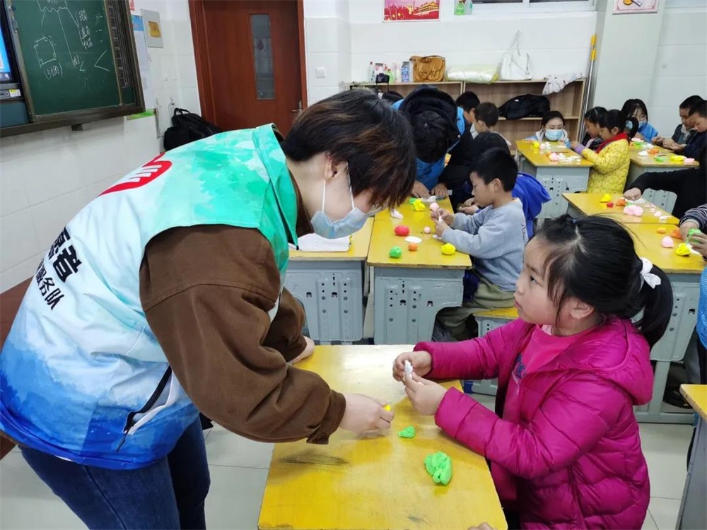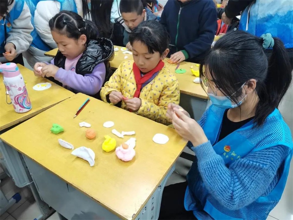 11月11日,“七彩四点半”公益课堂第一讲顺利开讲!太阳tyc集团5997青年志愿者总队以及光影之翼服务队志愿者一行来到红旗小学延时课课堂,结合立冬节气,带领同学们一起学习节气、习俗知识,制作太空泥手工作品。