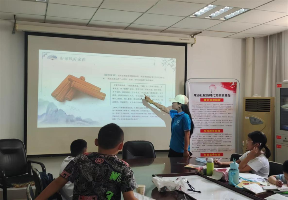 7月29日,志愿者们开展了传统文化主题分享活动,通过PPT讲解、朝代歌背诵等环节,带领社区少年儿童进一步了解我国优秀传统文化,提升孩子们的文化认同感,增强了孩子们的文化自信。