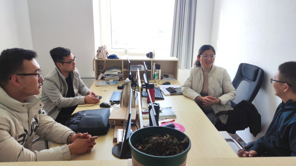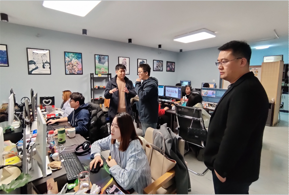 2月24日,郝翰与陈浩然作为学院代表来到山东省放牛班文化传媒有限公司看望实习学生刘鑫与冯文慧。老师对两位同学的工作情况进行了详细了解,刘鑫、冯文慧两位同学依次分享自己担任动画师一职的收获与感悟。实习单位领导表示,实习学生专业基础扎实,实践应用能力较强,能够积极开展实习工作,并对进一步打通拓展校企合作道路表示期待和肯定。