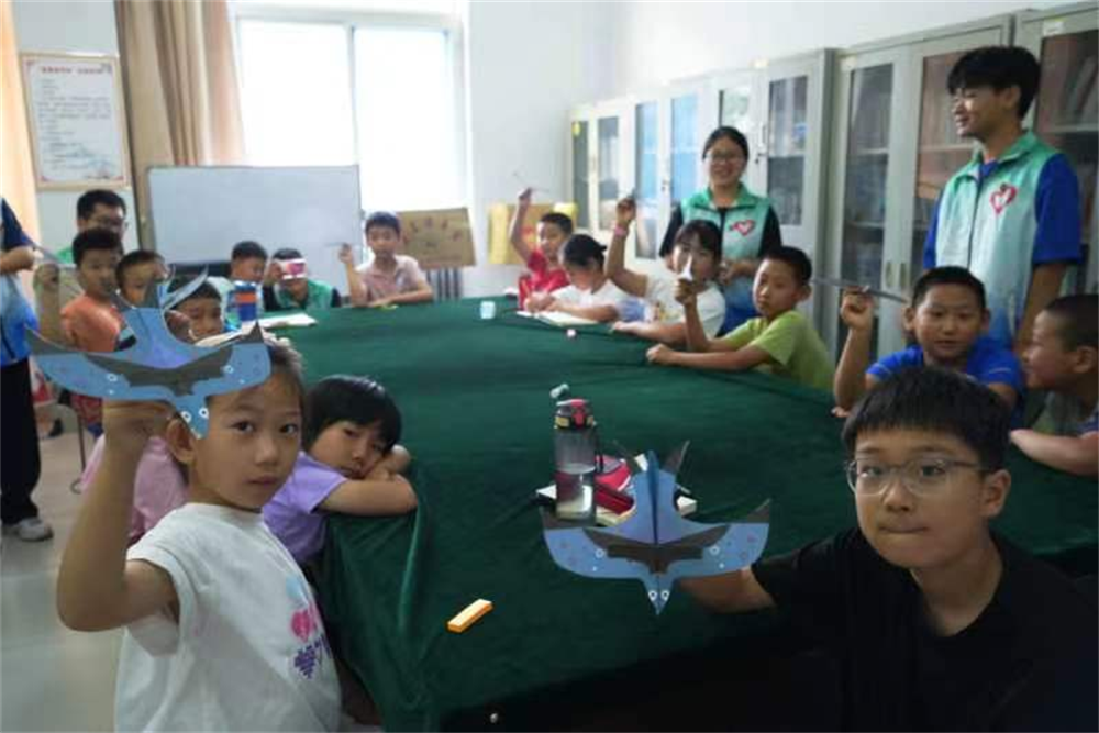 “不可思议的力——飞行的秘密”课堂上,志愿者讲解完有关力的基本知识,带领社区小朋友一同进行手工制作,尝试制作“燕子纸飞机”,孩子们积极响应,创作出了各具特色的折纸作品,小小的纸飞机满载着孩子的童真与快乐。