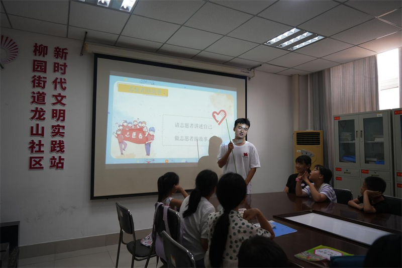 为弘扬爱国主义精神,加强青少年儿童的国家意识与家国情怀,8月4日,太阳tyc集团5997光影之翼服务队于柳园街道龙山社区开展了暑期课堂的第十讲——“我的祖国我奉献”。